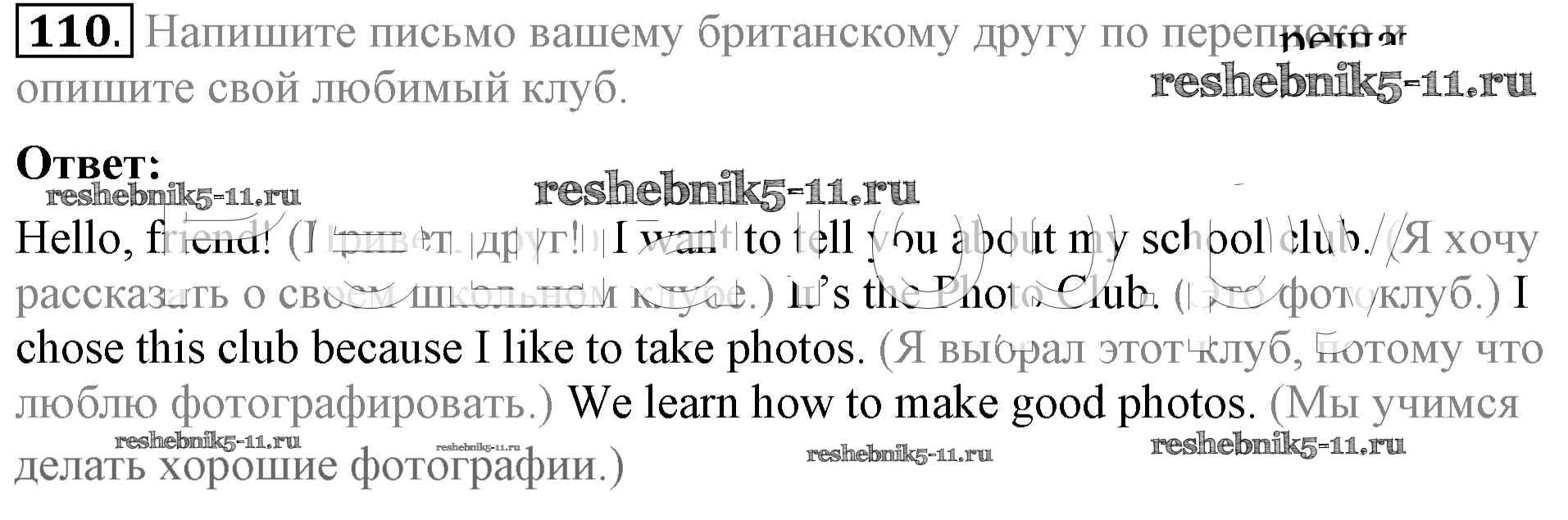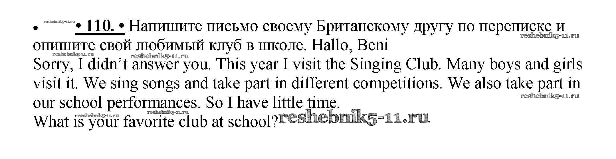 Готовая домашняя работа с ответами по Английскому языку за 5 класс Биболетова, Денисенко, Трубанева Учебник Enjoy English Титул 2015 ФГОС - Unit 1. Hello! Nice to see you again! 110