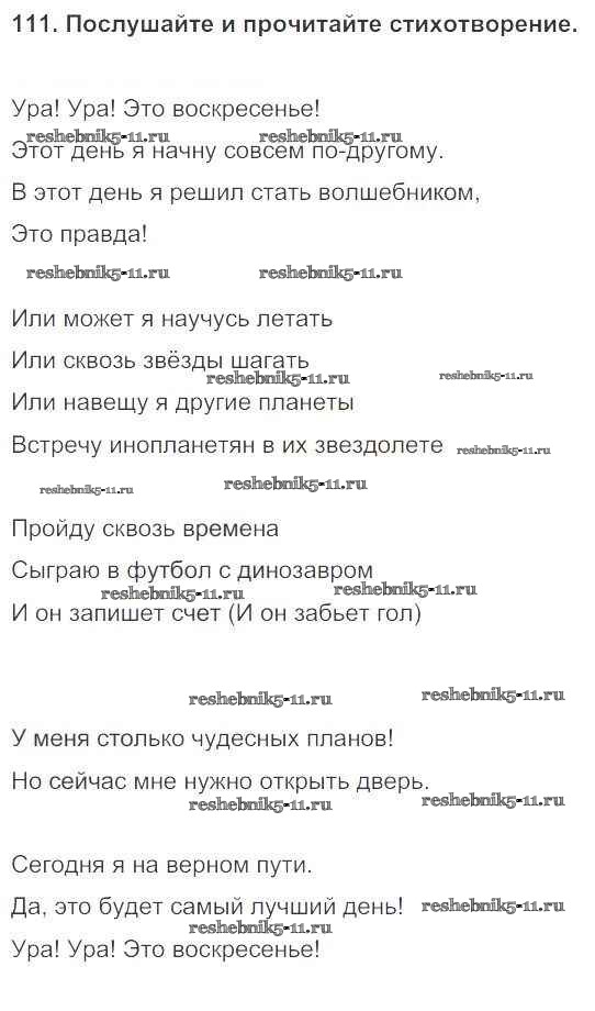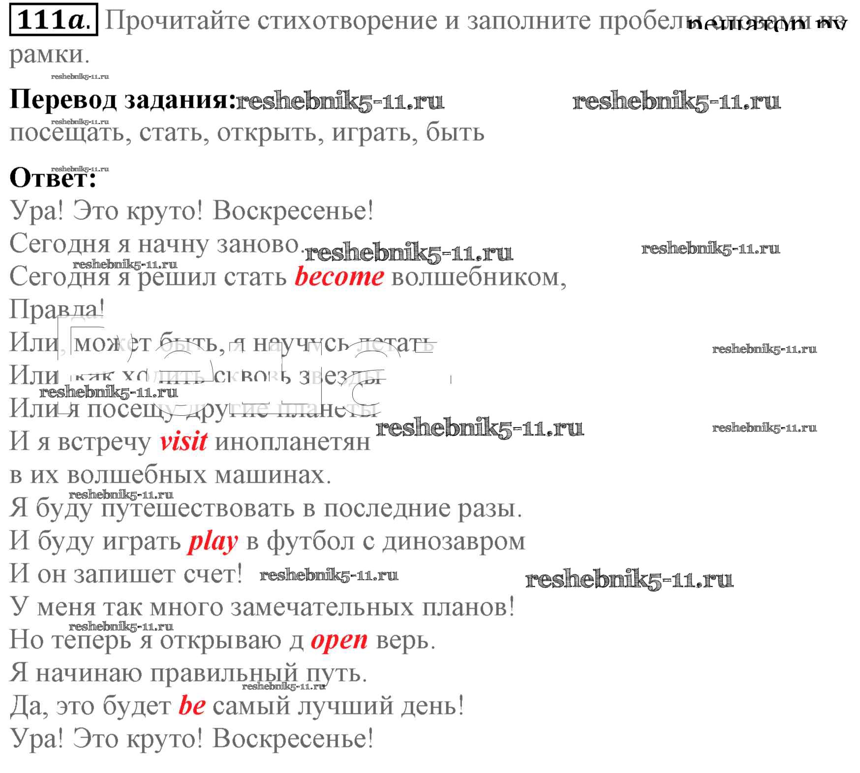 Готовая домашняя работа с ответами по Английскому языку за 5 класс Биболетова, Денисенко, Трубанева Учебник Enjoy English Титул 2015 ФГОС - Unit 1. Hello! Nice to see you again! 111
