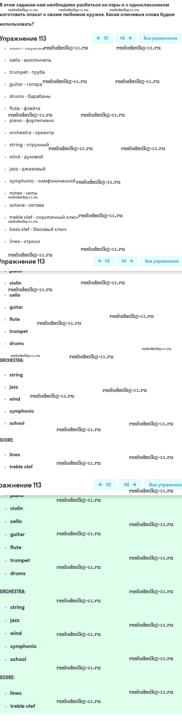 Готовая домашняя работа с ответами по Английскому языку за 5 класс Биболетова, Денисенко, Трубанева Учебник Enjoy English Титул 2015 ФГОС - Unit 1. Hello! Nice to see you again! 113