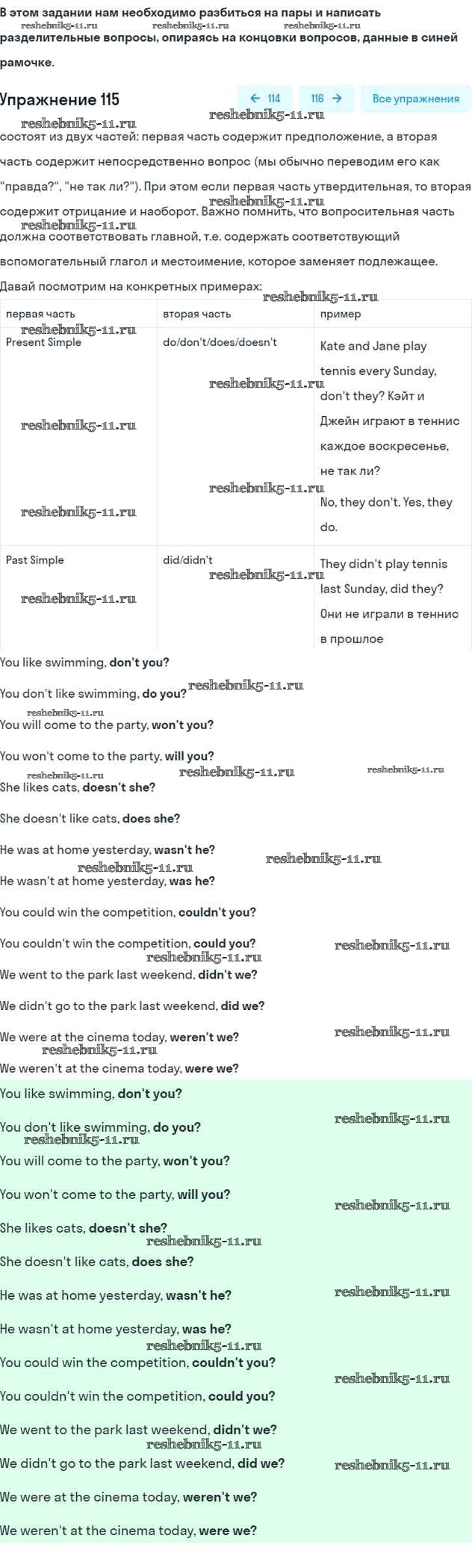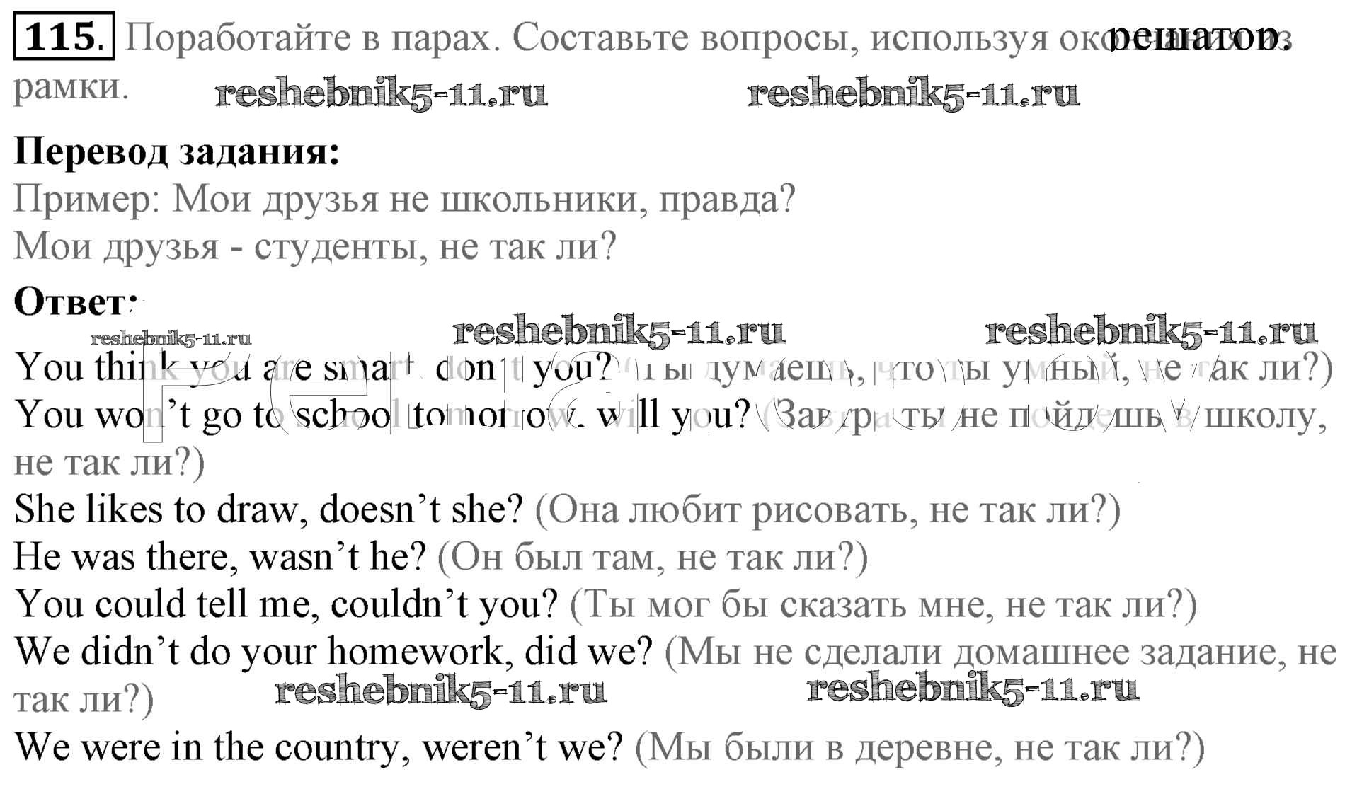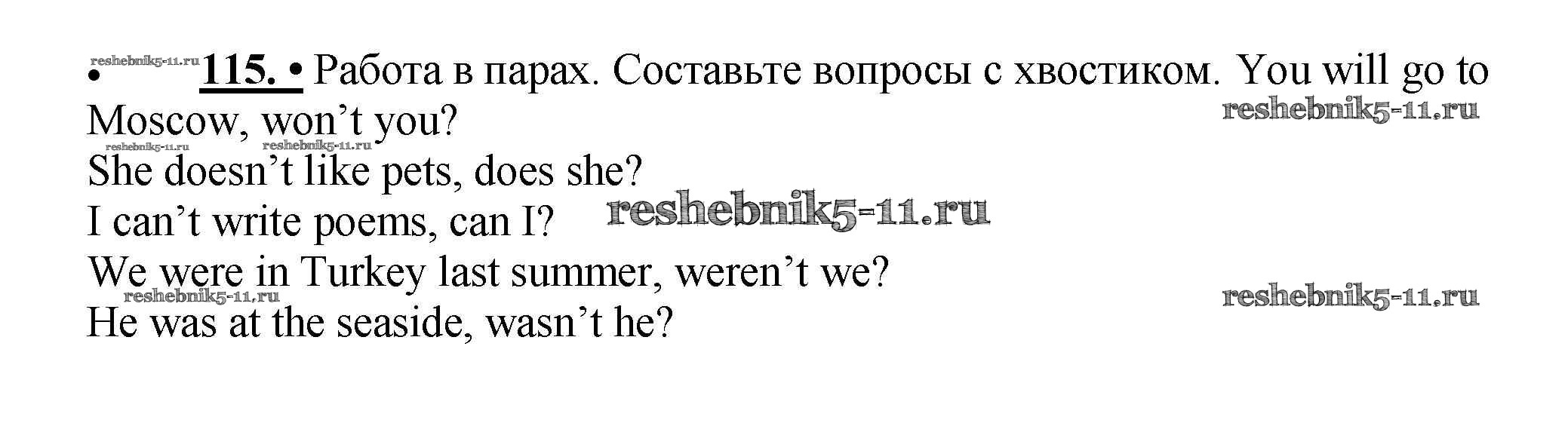 Готовая домашняя работа с ответами по Английскому языку за 5 класс Биболетова, Денисенко, Трубанева Учебник Enjoy English Титул 2015 ФГОС - Unit 1. Hello! Nice to see you again! 115