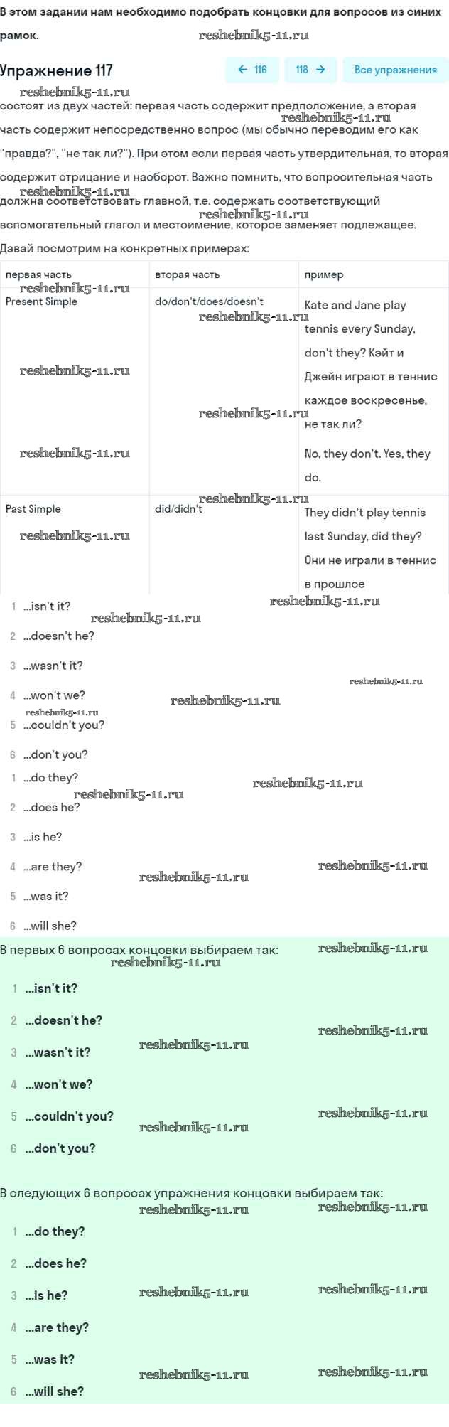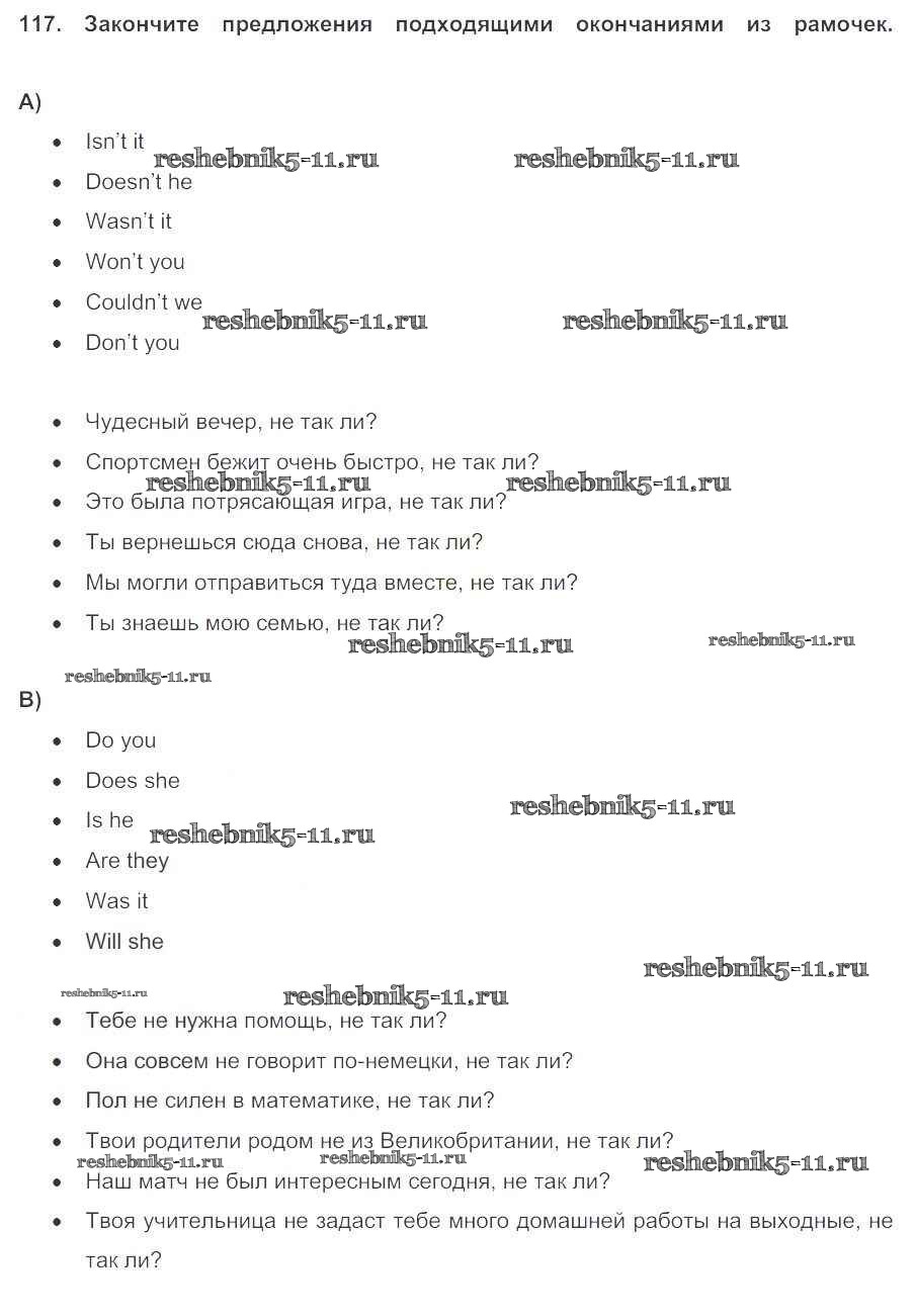 Готовая домашняя работа с ответами по Английскому языку за 5 класс Биболетова, Денисенко, Трубанева Учебник Enjoy English Титул 2015 ФГОС - Unit 1. Hello! Nice to see you again! 117