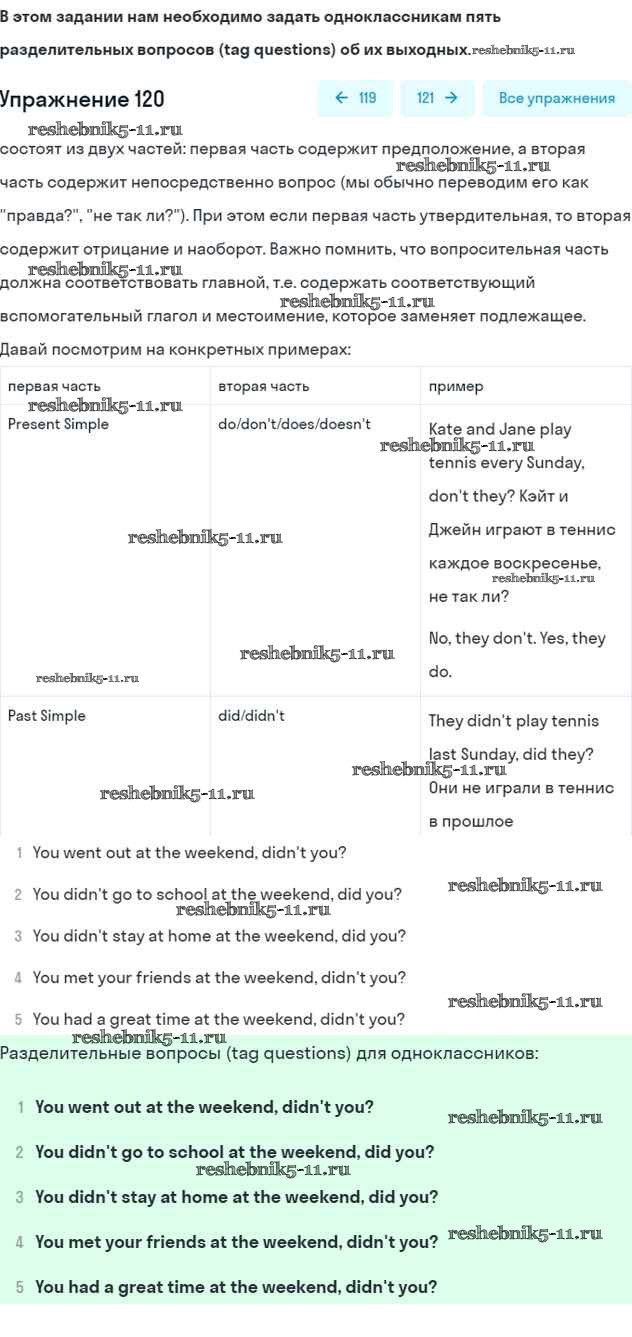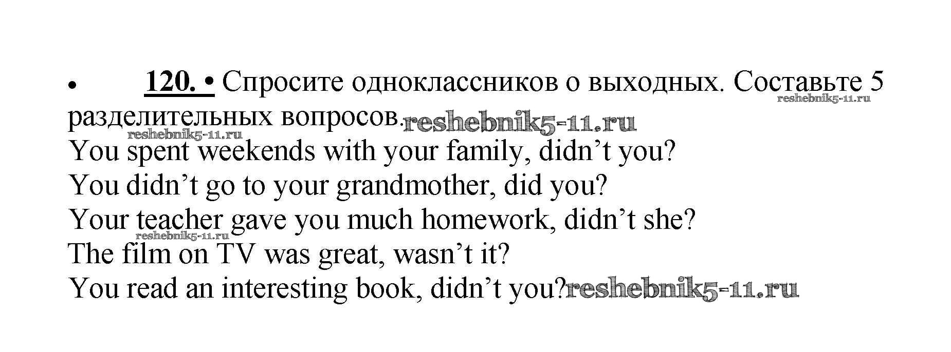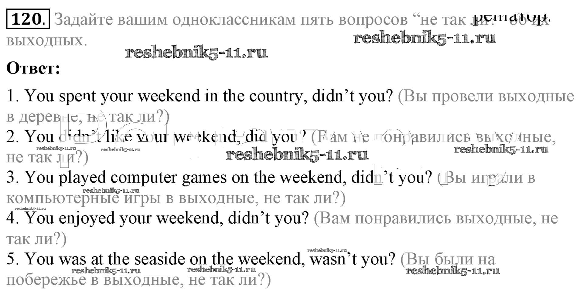 Готовая домашняя работа с ответами по Английскому языку за 5 класс Биболетова, Денисенко, Трубанева Учебник Enjoy English Титул 2015 ФГОС - Unit 1. Hello! Nice to see you again! 120