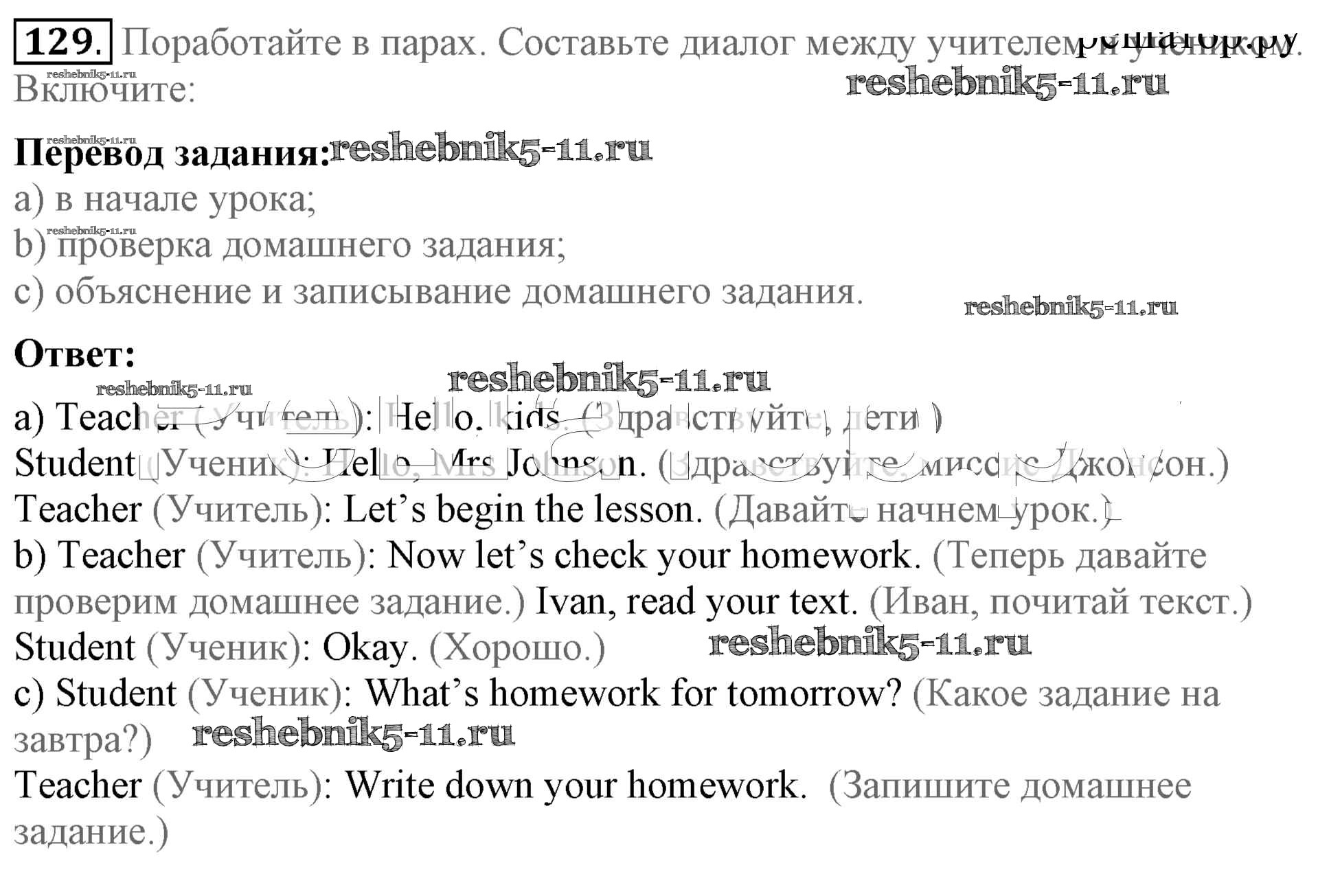 Готовая домашняя работа с ответами по Английскому языку за 5 класс Биболетова, Денисенко, Трубанева Учебник Enjoy English Титул 2015 ФГОС - Unit 1. Hello! Nice to see you again! 129