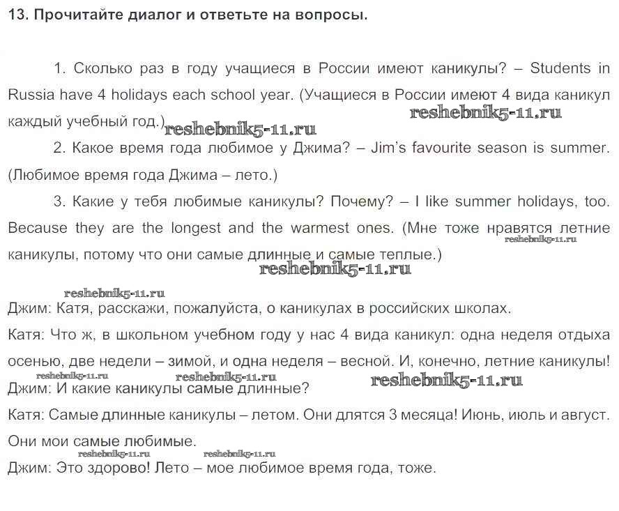 Готовая домашняя работа с ответами по Английскому языку за 5 класс Биболетова, Денисенко, Трубанева Учебник Enjoy English Титул 2015 ФГОС - Unit 1. Hello! Nice to see you again! 13