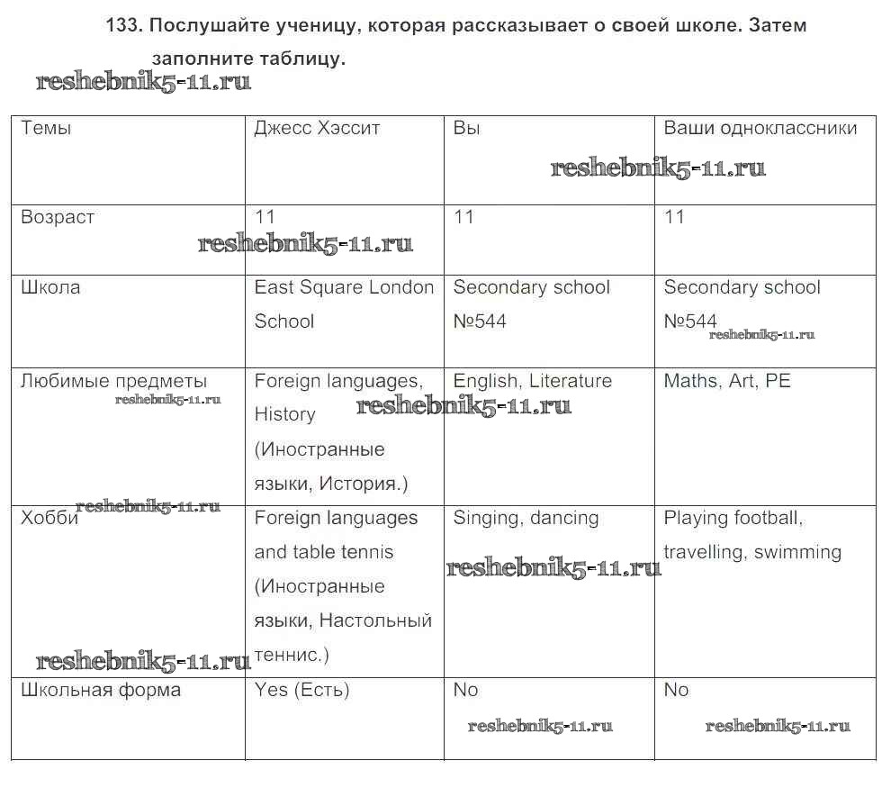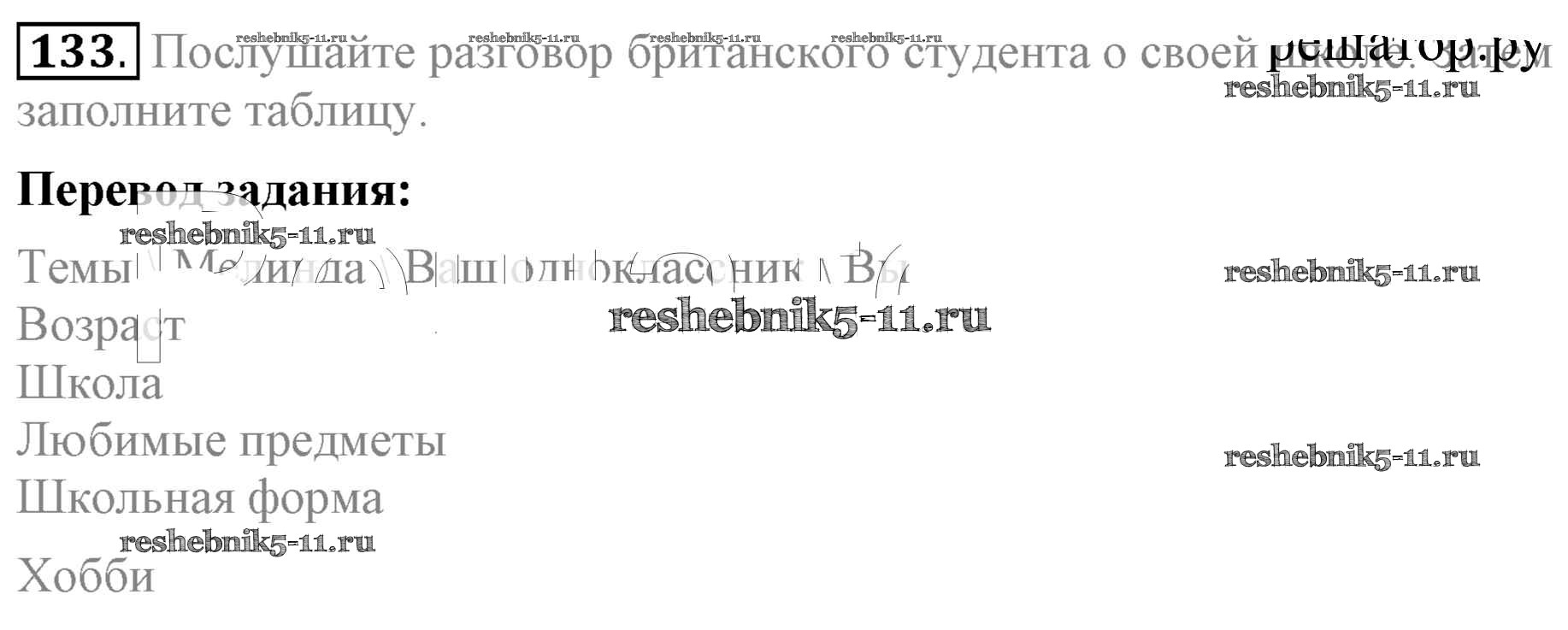 Готовая домашняя работа с ответами по Английскому языку за 5 класс Биболетова, Денисенко, Трубанева Учебник Enjoy English Титул 2015 ФГОС - Unit 1. Hello! Nice to see you again! 133