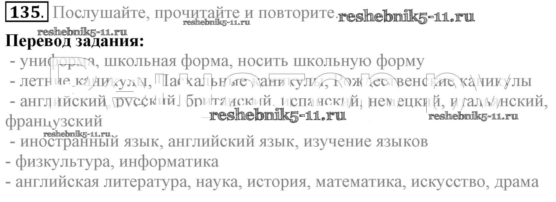 Готовая домашняя работа с ответами по Английскому языку за 5 класс Биболетова, Денисенко, Трубанева Учебник Enjoy English Титул 2015 ФГОС - Unit 1. Hello! Nice to see you again! 135