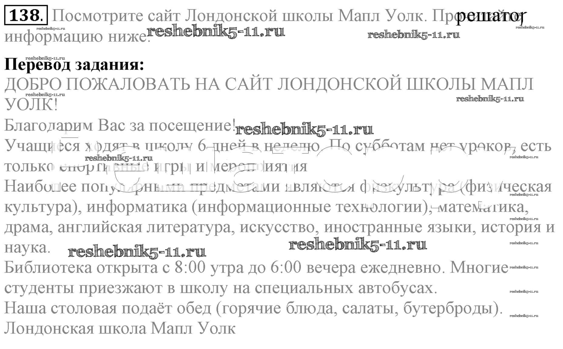 Готовая домашняя работа с ответами по Английскому языку за 5 класс Биболетова, Денисенко, Трубанева Учебник Enjoy English Титул 2015 ФГОС - Unit 1. Hello! Nice to see you again! 138