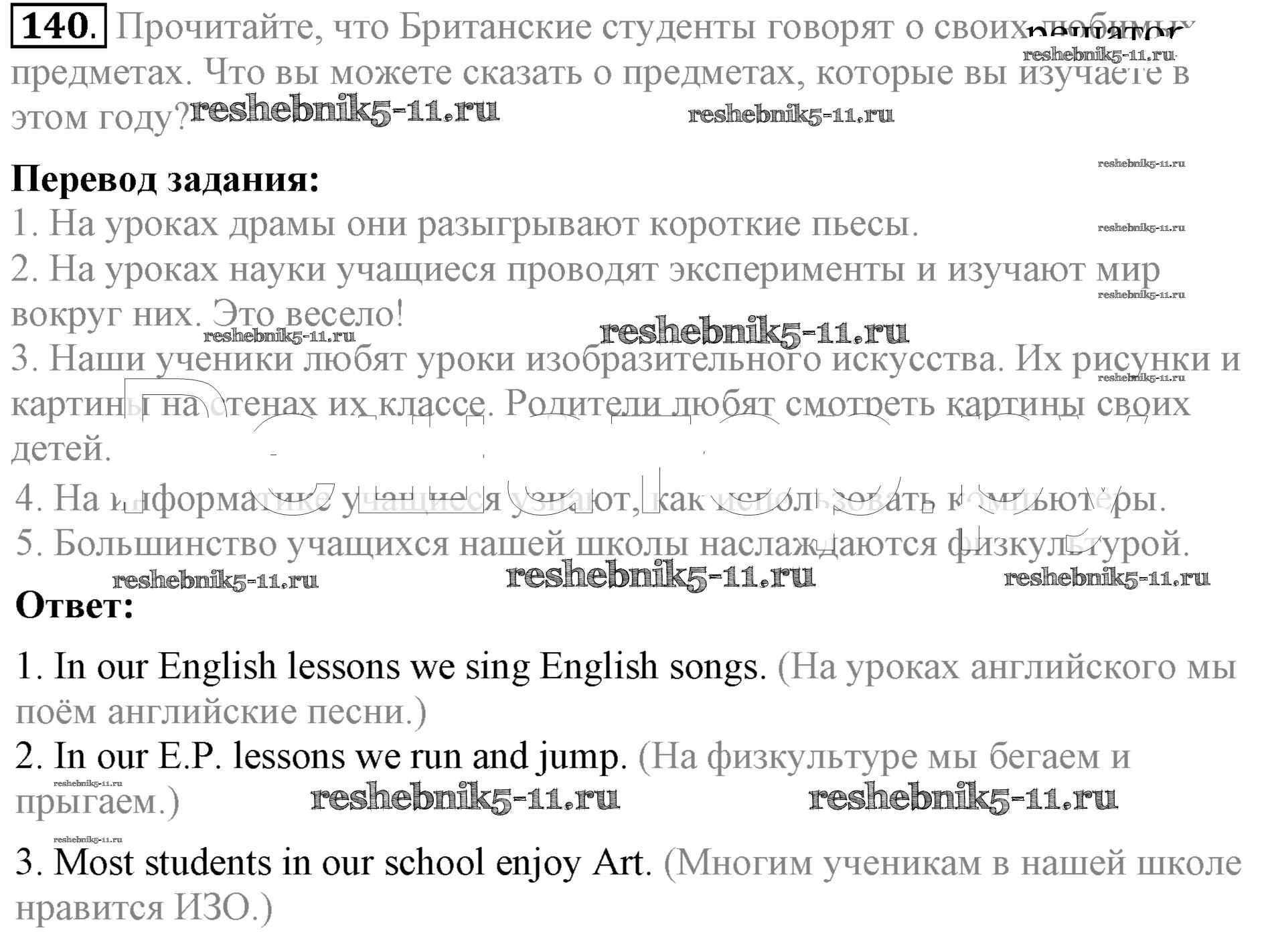 Готовая домашняя работа с ответами по Английскому языку за 5 класс Биболетова, Денисенко, Трубанева Учебник Enjoy English Титул 2015 ФГОС - Unit 1. Hello! Nice to see you again! 140
