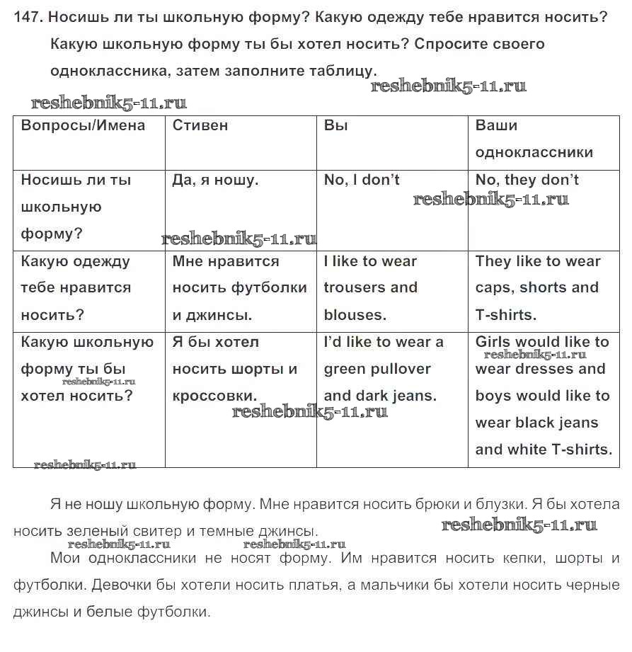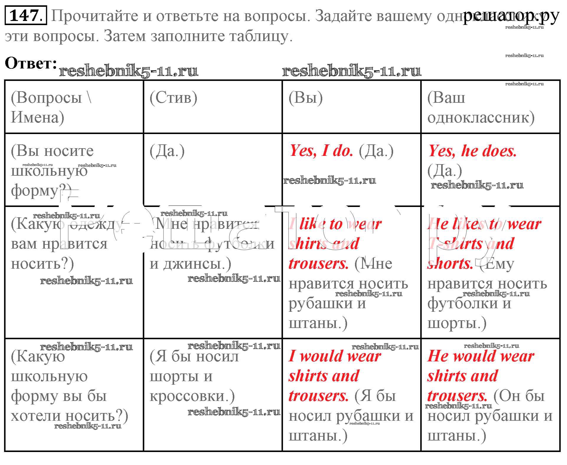 Готовая домашняя работа с ответами по Английскому языку за 5 класс Биболетова, Денисенко, Трубанева Учебник Enjoy English Титул 2015 ФГОС - Unit 1. Hello! Nice to see you again! 147