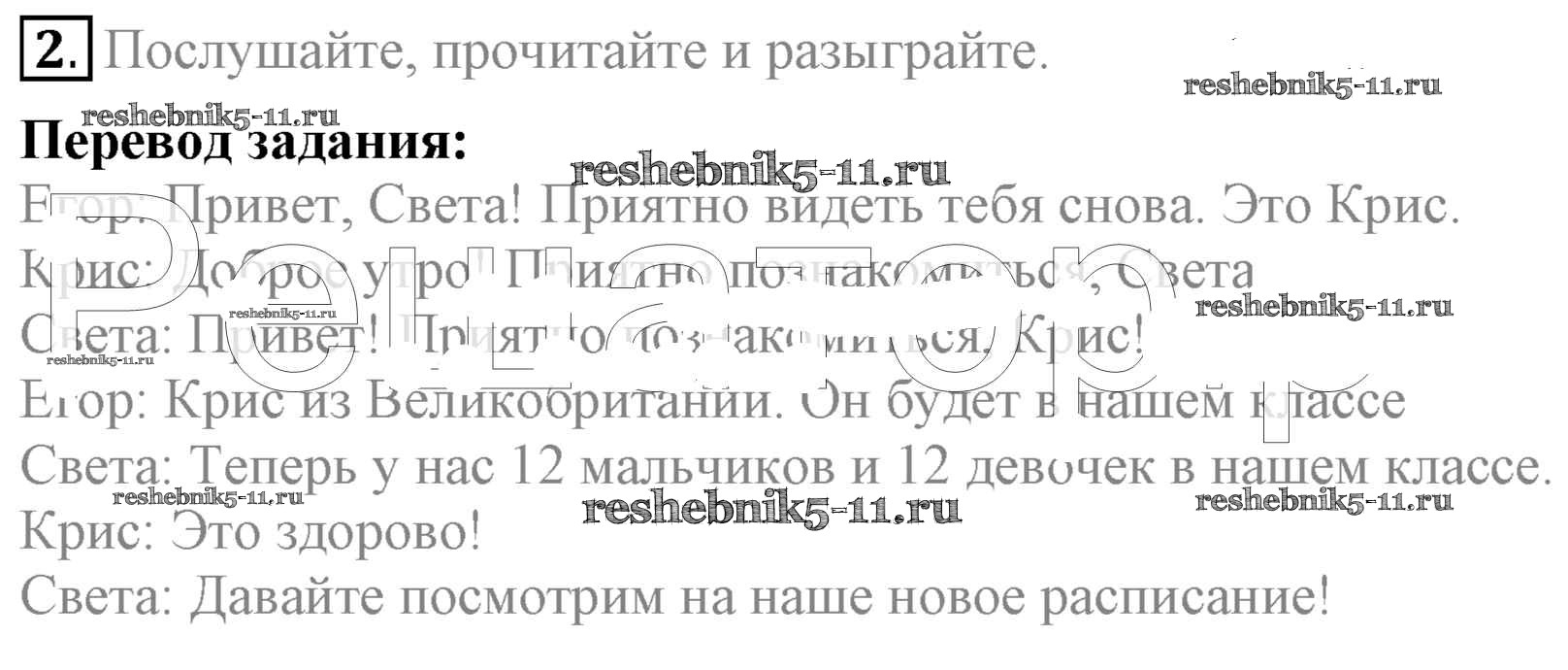 Готовая домашняя работа с ответами по Английскому языку за 5 класс Биболетова, Денисенко, Трубанева Учебник Enjoy English Титул 2015 ФГОС - Unit 1. Hello! Nice to see you again! 2