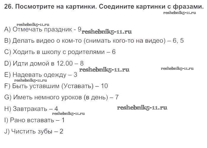 Готовая домашняя работа с ответами по Английскому языку за 5 класс Биболетова, Денисенко, Трубанева Учебник Enjoy English Титул 2015 ФГОС - Unit 1. Hello! Nice to see you again! 26