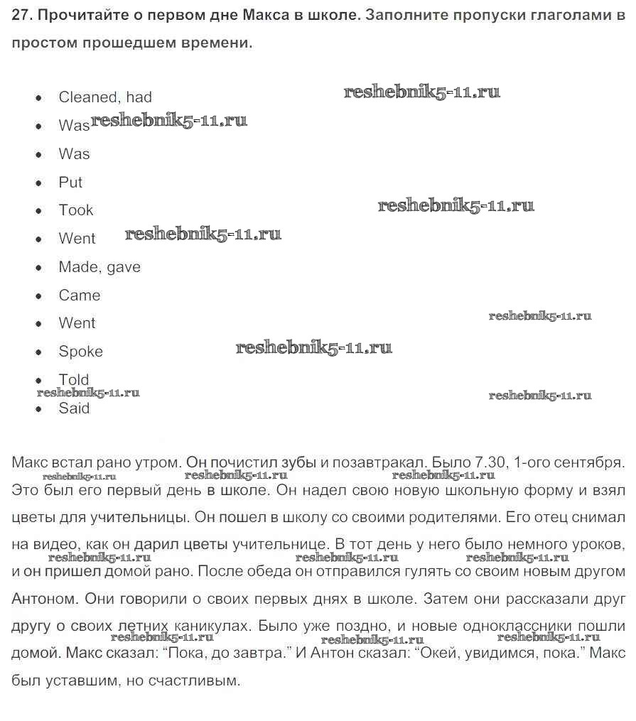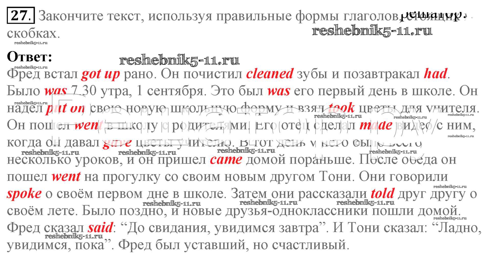 Готовая домашняя работа с ответами по Английскому языку за 5 класс Биболетова, Денисенко, Трубанева Учебник Enjoy English Титул 2015 ФГОС - Unit 1. Hello! Nice to see you again! 27