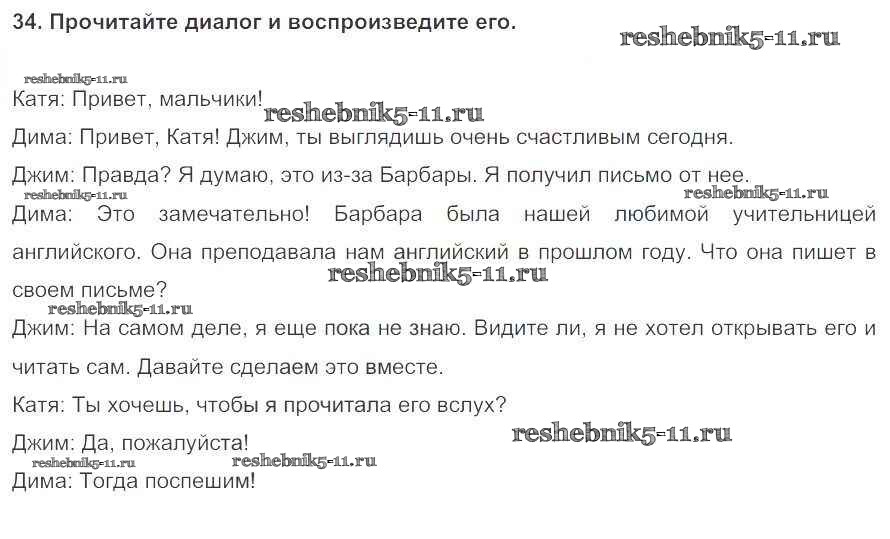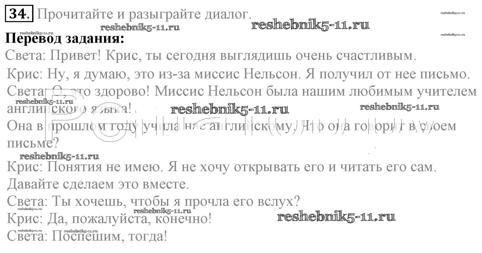 Готовая домашняя работа с ответами по Английскому языку за 5 класс Биболетова, Денисенко, Трубанева Учебник Enjoy English Титул 2015 ФГОС - Unit 1. Hello! Nice to see you again! 34
