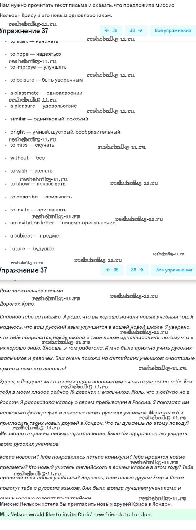 Готовая домашняя работа с ответами по Английскому языку за 5 класс Биболетова, Денисенко, Трубанева Учебник Enjoy English Титул 2015 ФГОС - Unit 1. Hello! Nice to see you again! 37