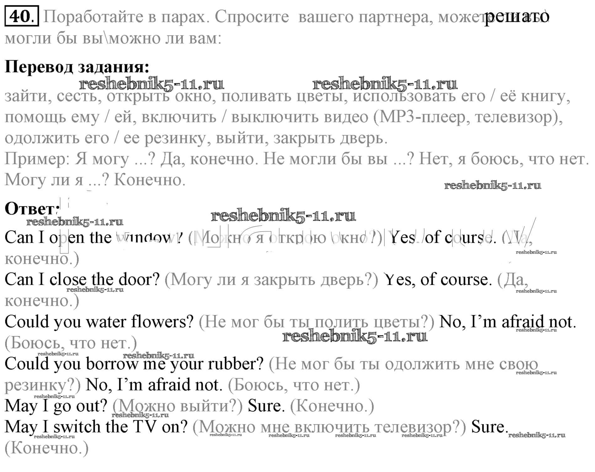 Готовая домашняя работа с ответами по Английскому языку за 5 класс Биболетова, Денисенко, Трубанева Учебник Enjoy English Титул 2015 ФГОС - Unit 1. Hello! Nice to see you again! 40