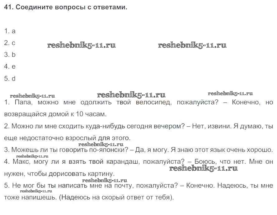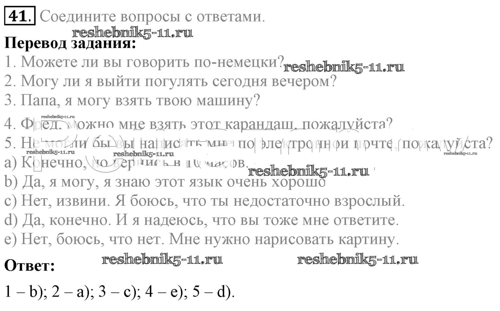 Готовая домашняя работа с ответами по Английскому языку за 5 класс Биболетова, Денисенко, Трубанева Учебник Enjoy English Титул 2015 ФГОС - Unit 1. Hello! Nice to see you again! 41