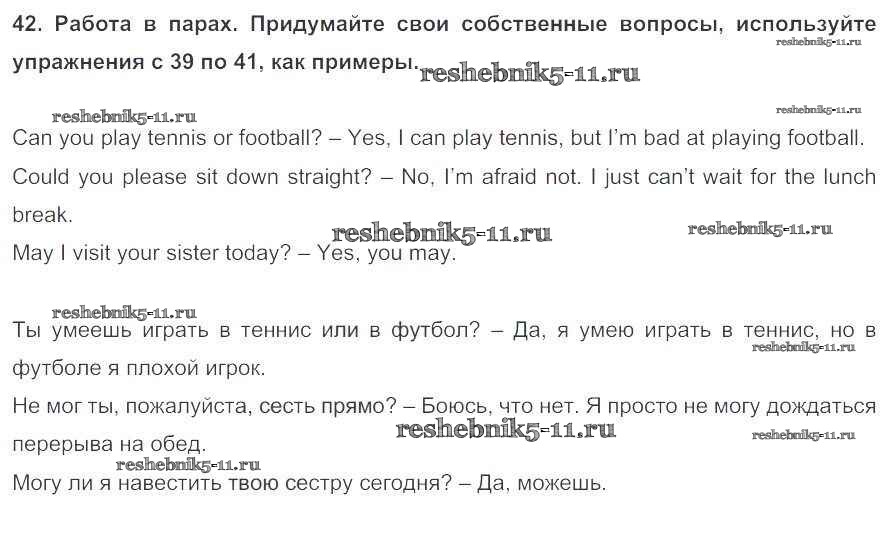 Готовая домашняя работа с ответами по Английскому языку за 5 класс Биболетова, Денисенко, Трубанева Учебник Enjoy English Титул 2015 ФГОС - Unit 1. Hello! Nice to see you again! 42