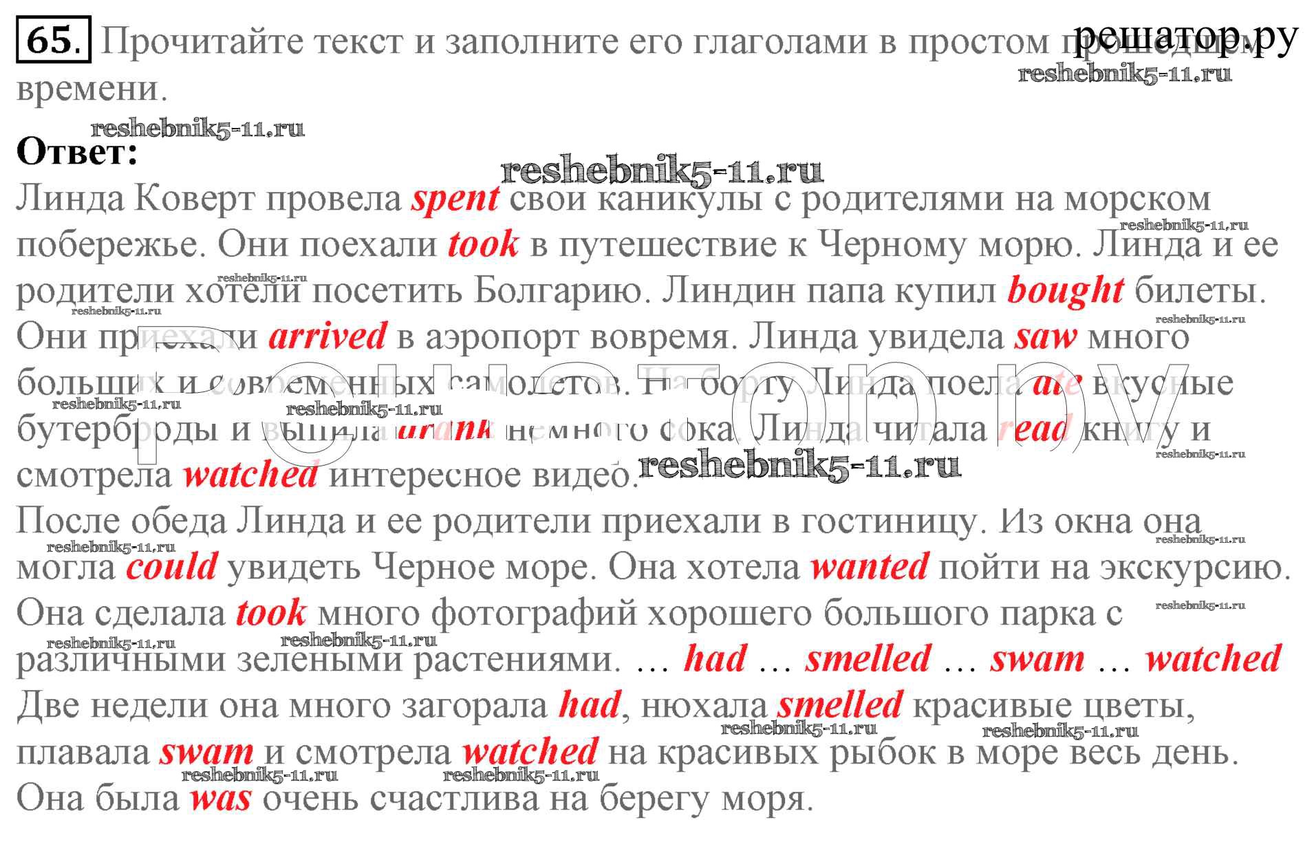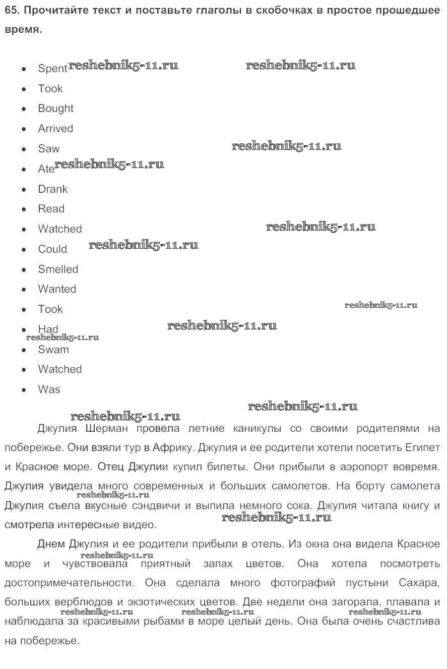 Готовая домашняя работа с ответами по Английскому языку за 5 класс Биболетова, Денисенко, Трубанева Учебник Enjoy English Титул 2015 ФГОС - Unit 1. Hello! Nice to see you again! 65