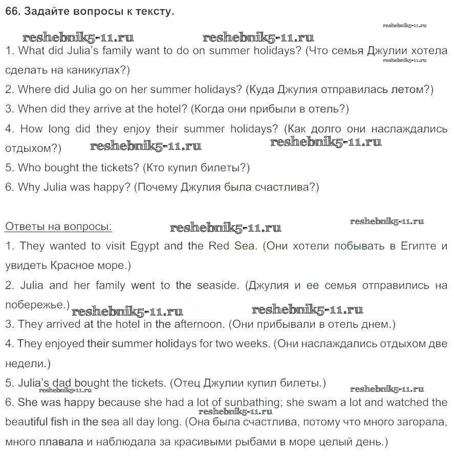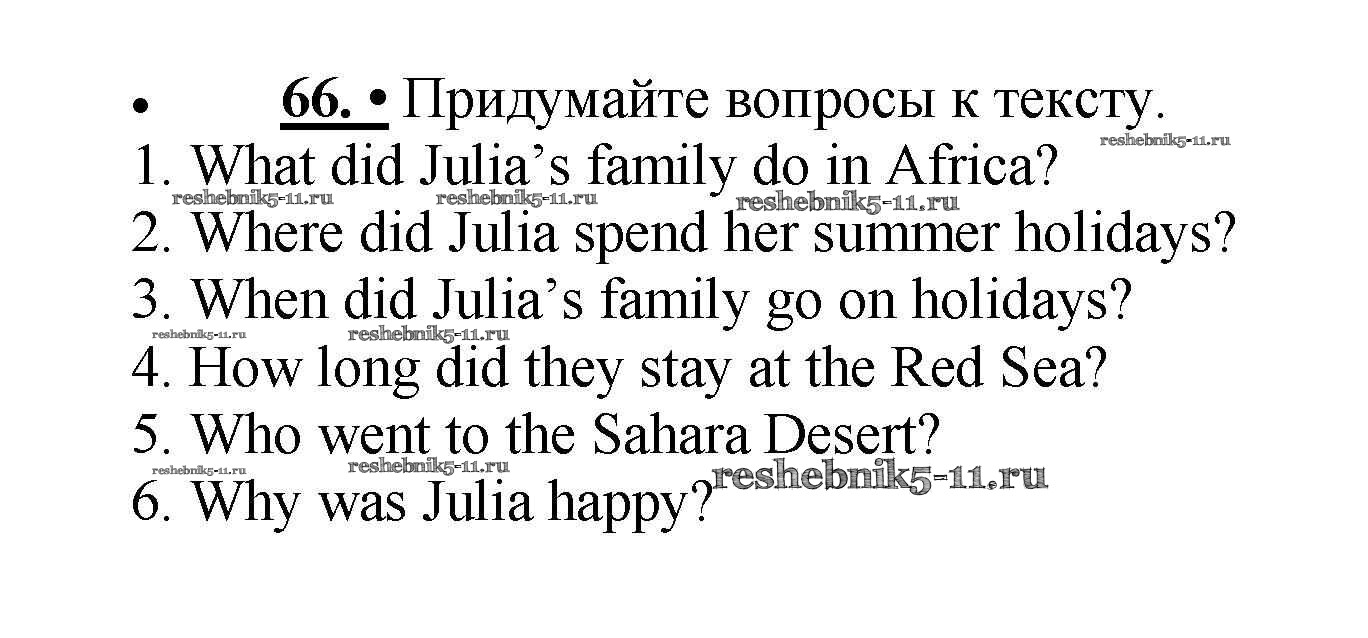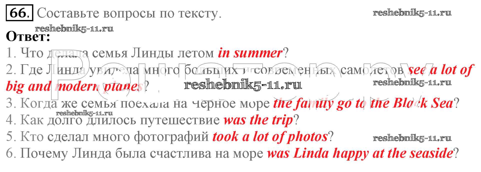 Готовая домашняя работа с ответами по Английскому языку за 5 класс Биболетова, Денисенко, Трубанева Учебник Enjoy English Титул 2015 ФГОС - Unit 1. Hello! Nice to see you again! 66