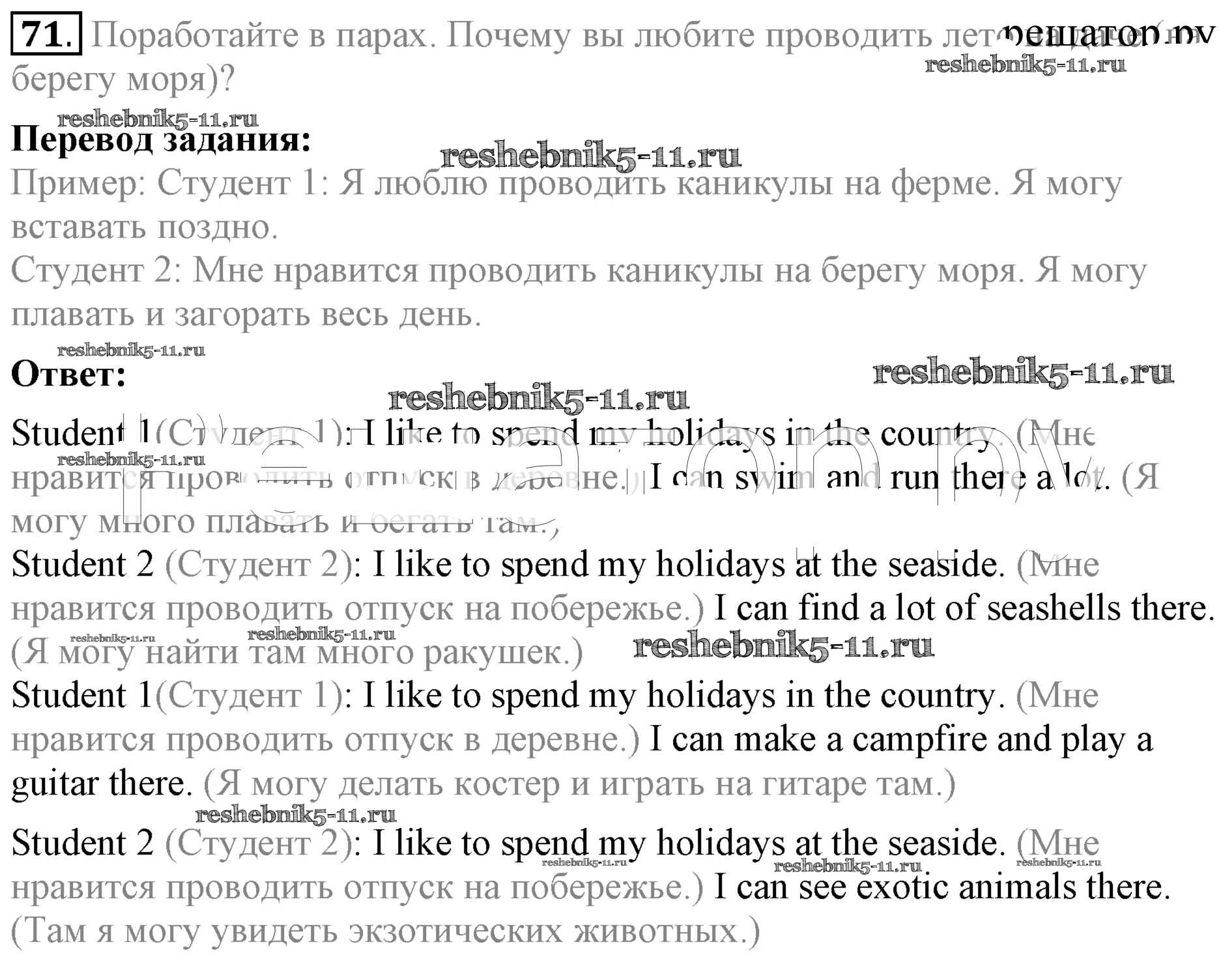 Готовая домашняя работа с ответами по Английскому языку за 5 класс Биболетова, Денисенко, Трубанева Учебник Enjoy English Титул 2015 ФГОС - Unit 1. Hello! Nice to see you again! 71