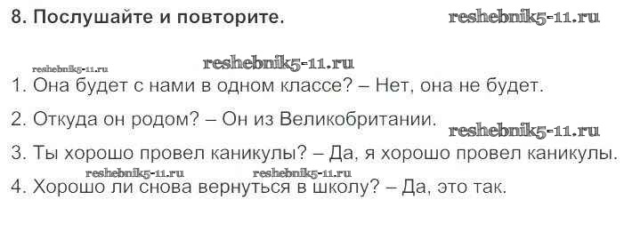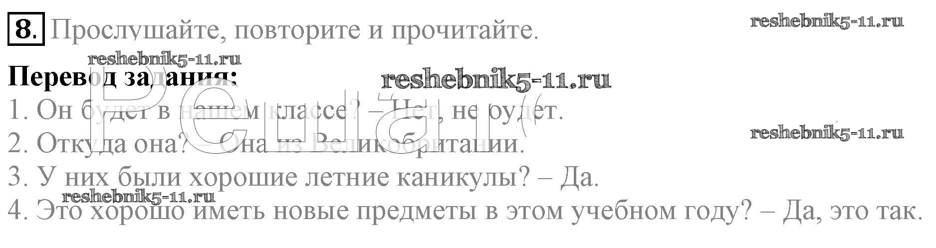 Готовая домашняя работа с ответами по Английскому языку за 5 класс Биболетова, Денисенко, Трубанева Учебник Enjoy English Титул 2015 ФГОС - Unit 1. Hello! Nice to see you again! 8