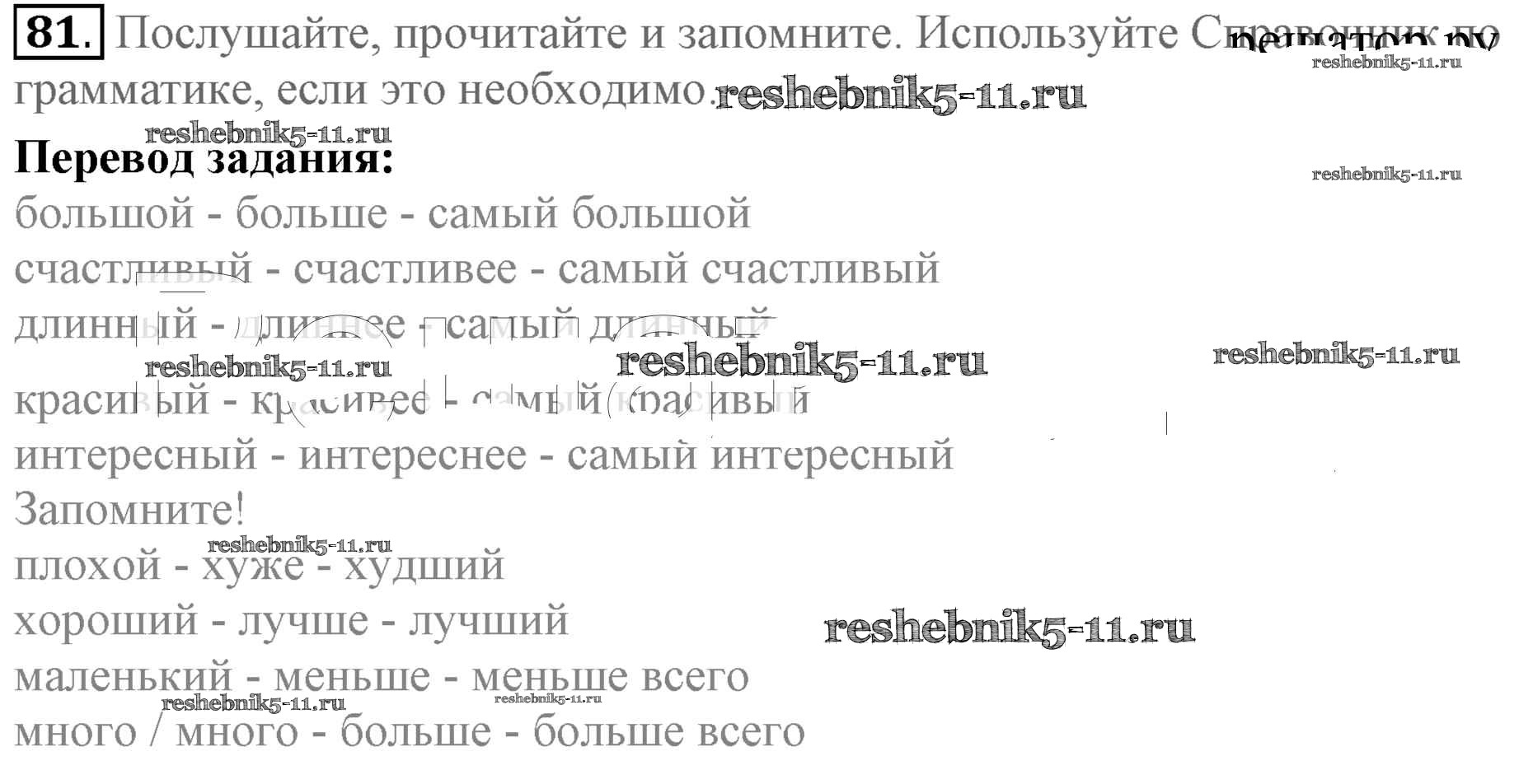 Готовая домашняя работа с ответами по Английскому языку за 5 класс Биболетова, Денисенко, Трубанева Учебник Enjoy English Титул 2015 ФГОС - Unit 1. Hello! Nice to see you again! 81