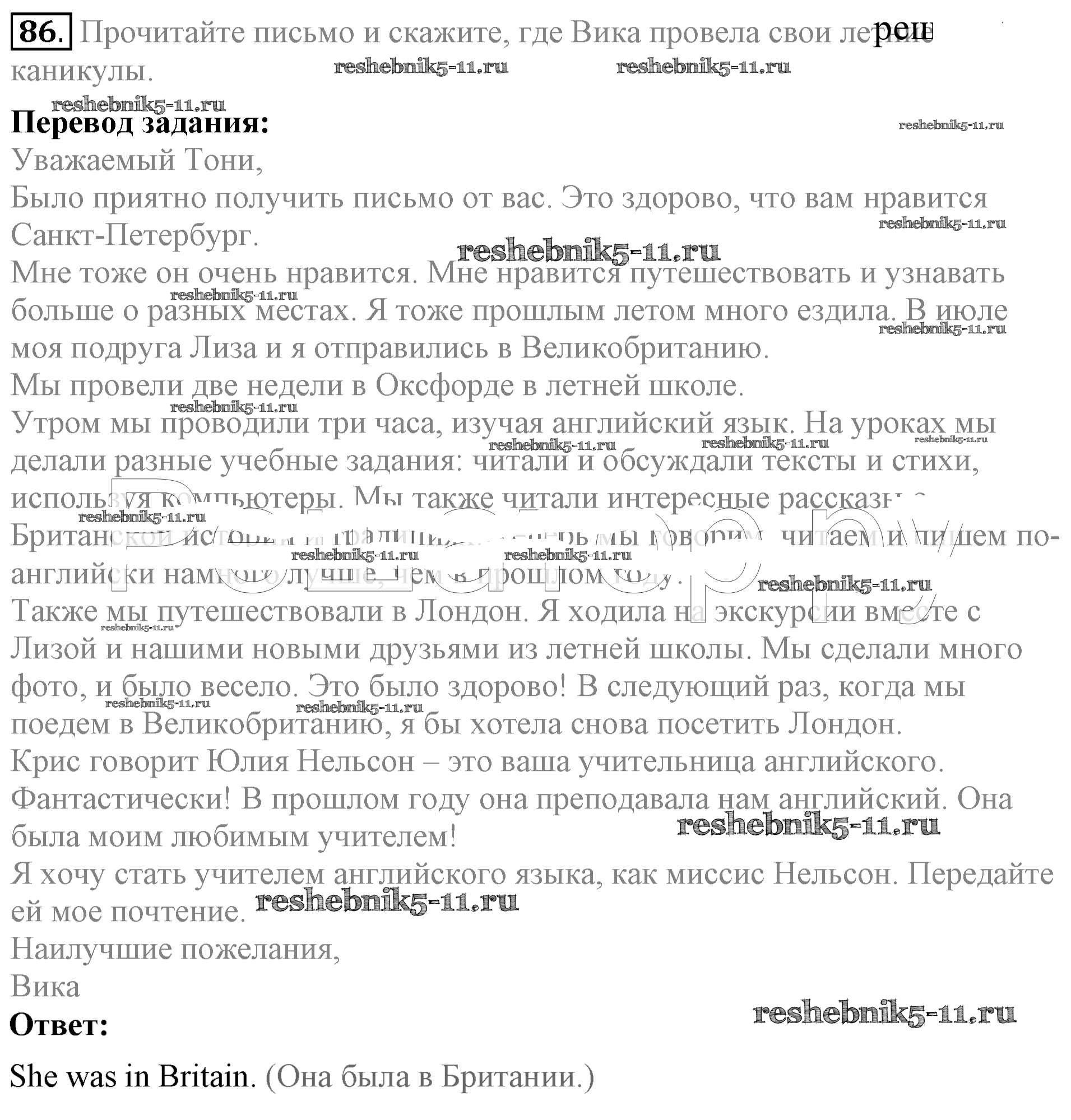 Готовая домашняя работа с ответами по Английскому языку за 5 класс Биболетова, Денисенко, Трубанева Учебник Enjoy English Титул 2015 ФГОС - Unit 1. Hello! Nice to see you again! 86