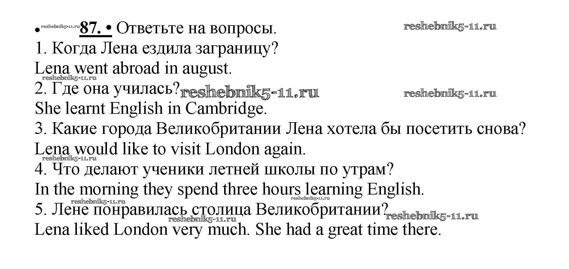 Готовая домашняя работа с ответами по Английскому языку за 5 класс Биболетова, Денисенко, Трубанева Учебник Enjoy English Титул 2015 ФГОС - Unit 1. Hello! Nice to see you again! 87
