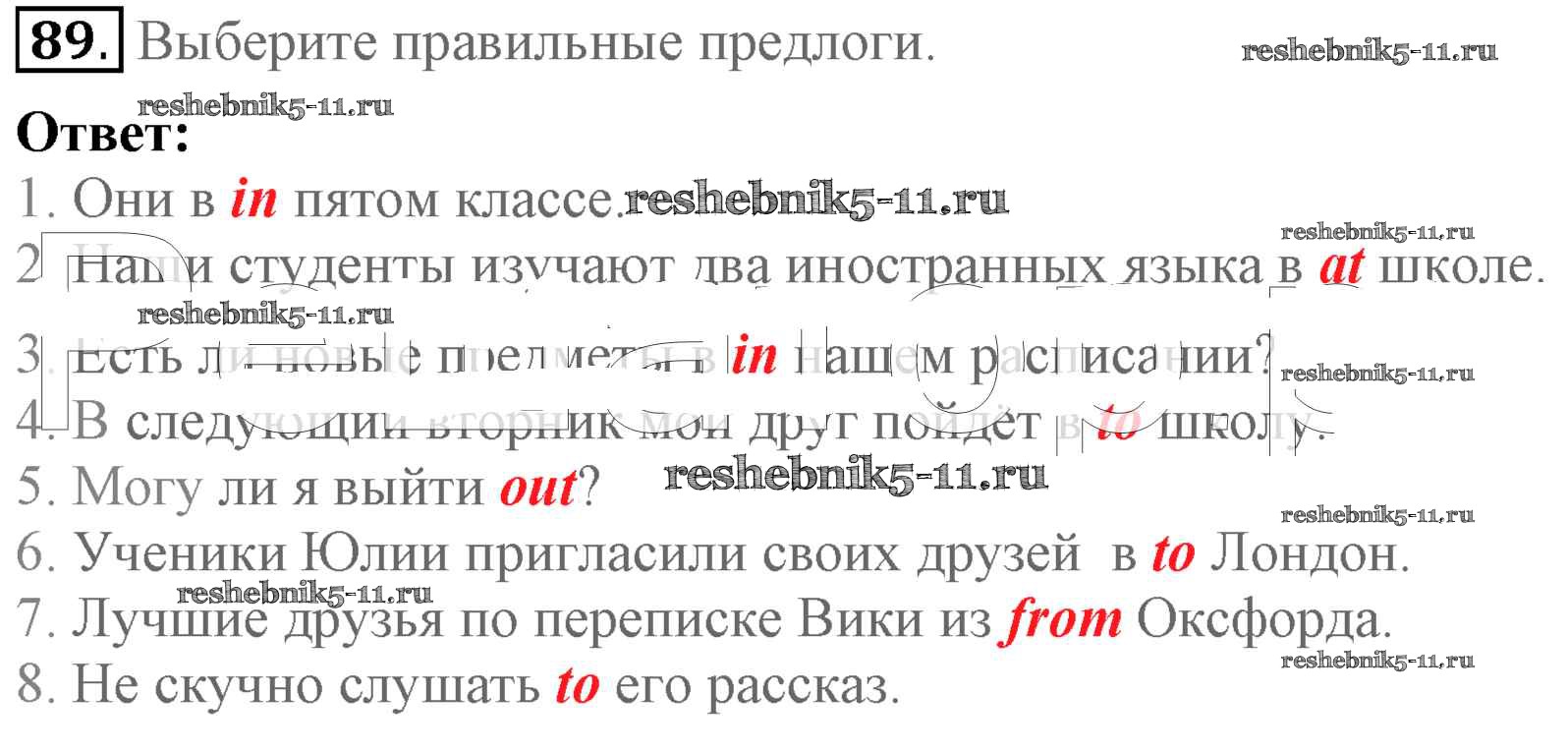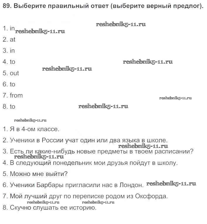 Готовая домашняя работа с ответами по Английскому языку за 5 класс Биболетова, Денисенко, Трубанева Учебник Enjoy English Титул 2015 ФГОС - Unit 1. Hello! Nice to see you again! 89