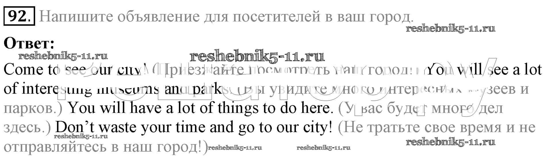 Готовая домашняя работа с ответами по Английскому языку за 5 класс Биболетова, Денисенко, Трубанева Учебник Enjoy English Титул 2015 ФГОС - Unit 1. Hello! Nice to see you again! 92