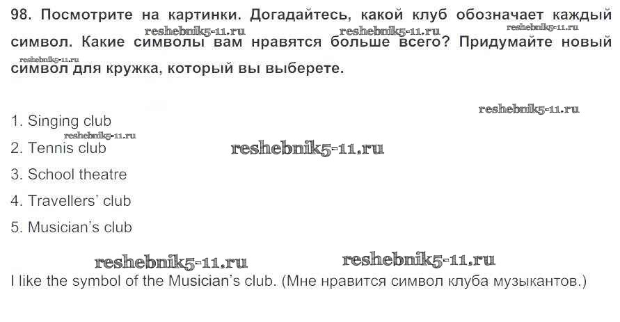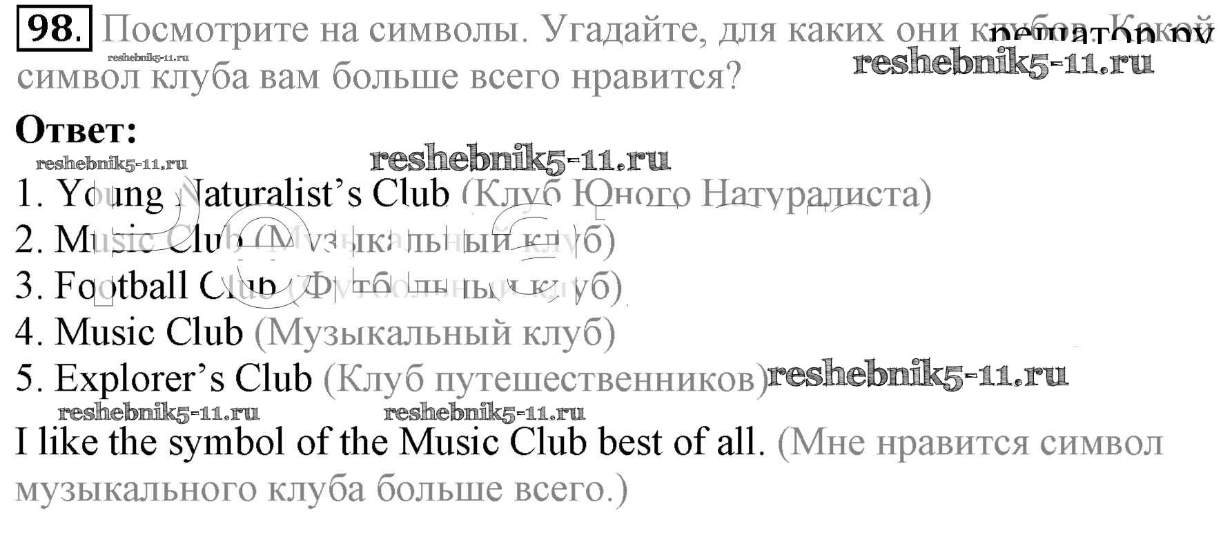 Готовая домашняя работа с ответами по Английскому языку за 5 класс Биболетова, Денисенко, Трубанева Учебник Enjoy English Титул 2015 ФГОС - Unit 1. Hello! Nice to see you again! 98