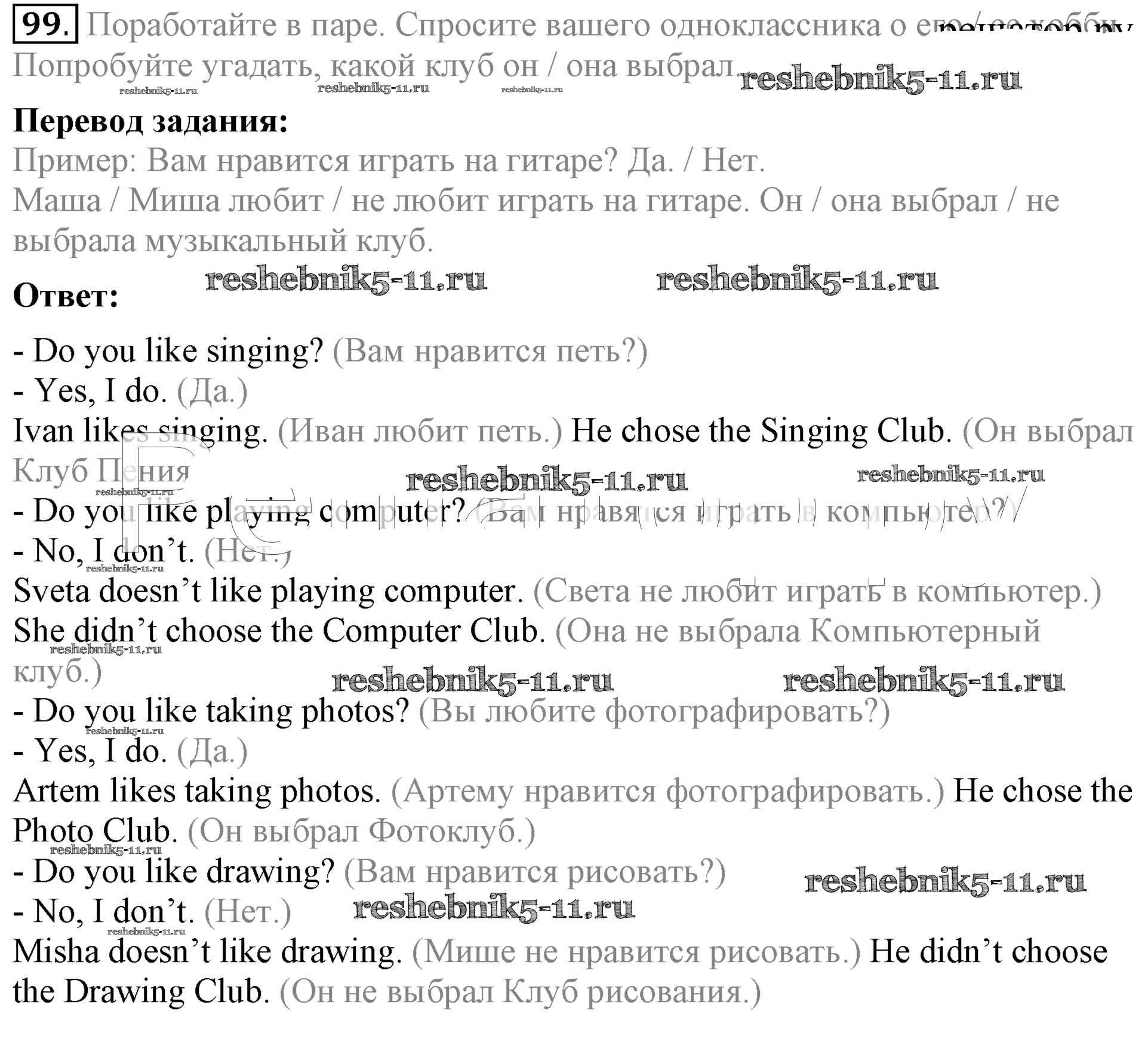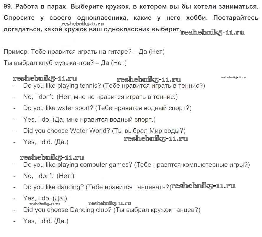 Готовая домашняя работа с ответами по Английскому языку за 5 класс Биболетова, Денисенко, Трубанева Учебник Enjoy English Титул 2015 ФГОС - Unit 1. Hello! Nice to see you again! 99