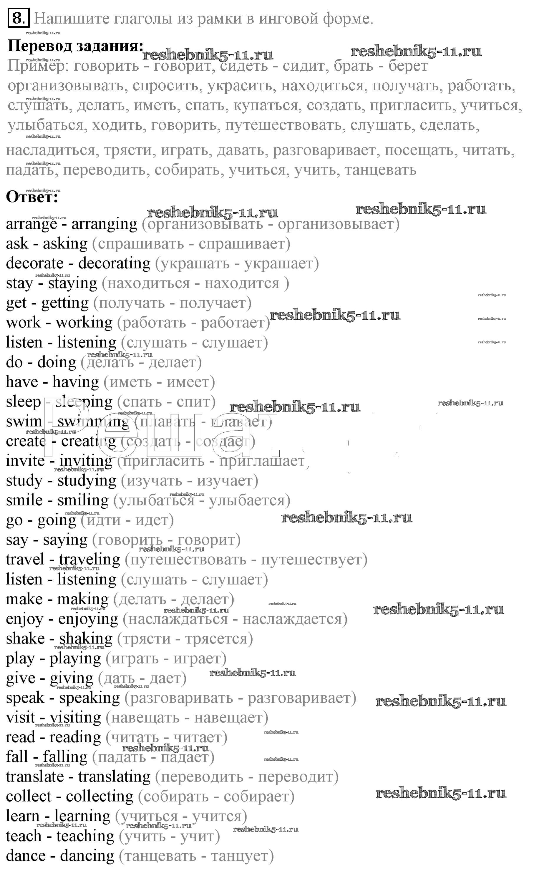 Готовая домашняя работа с ответами по Английскому языку за 5 класс Биболетова, Денисенко, Трубанева Учебник Enjoy English Титул 2015 ФГОС - Домашняя работа 8