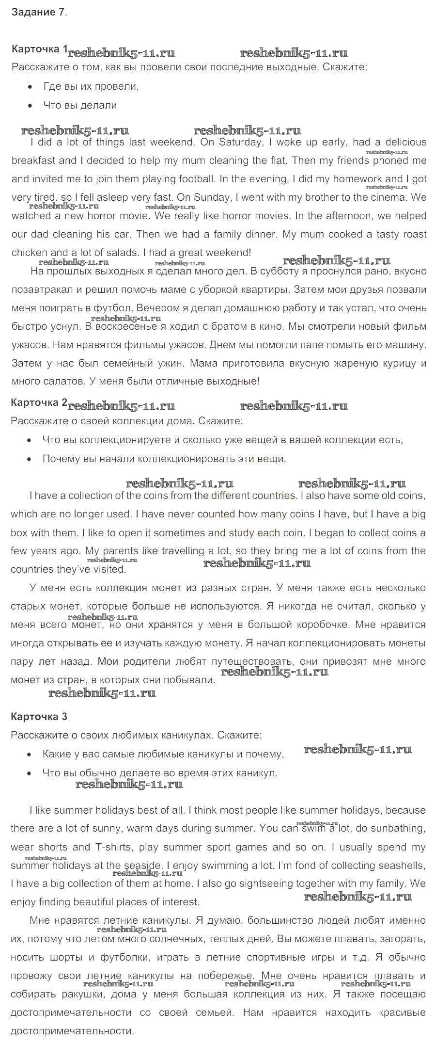 Готовая домашняя работа с ответами по Английскому языку за 5 класс Биболетова, Денисенко, Трубанева Учебник Enjoy English Титул 2015 ФГОС - Проверка знаний 7