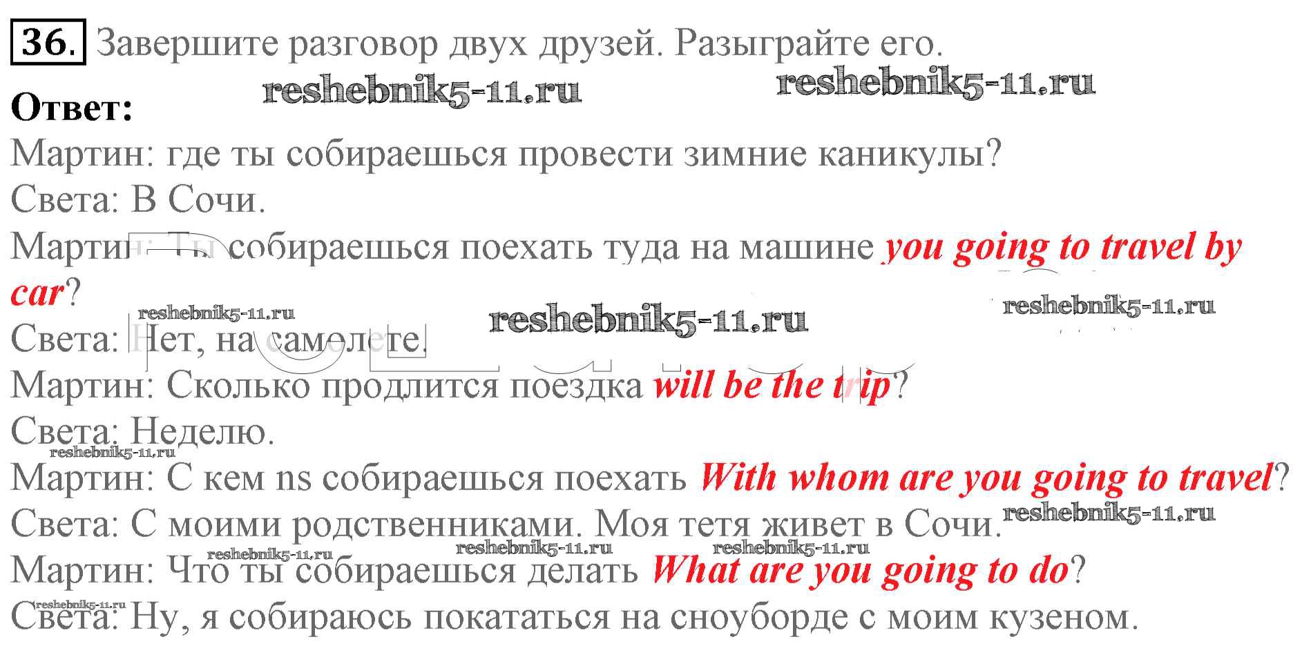 Готовая домашняя работа с ответами по Английскому языку за 5 класс Биболетова, Денисенко, Трубанева Учебник Enjoy English Титул 2015 ФГОС - Unit 2. We are going to travel to London 36