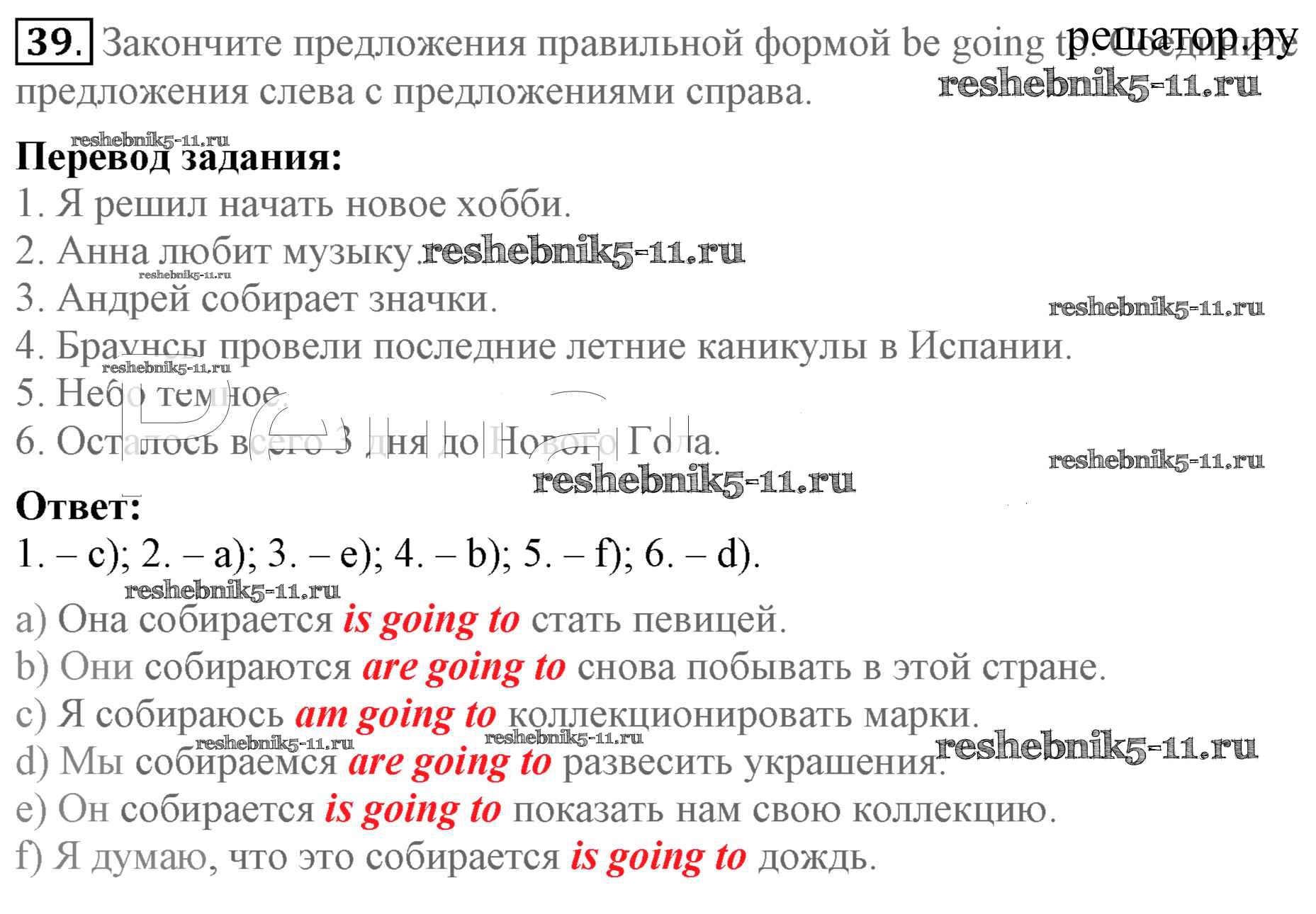 Готовая домашняя работа с ответами по Английскому языку за 5 класс Биболетова, Денисенко, Трубанева Учебник Enjoy English Титул 2015 ФГОС - Unit 2. We are going to travel to London 39
