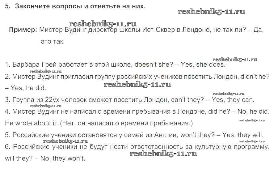 Готовая домашняя работа с ответами по Английскому языку за 5 класс Биболетова, Денисенко, Трубанева Учебник Enjoy English Титул 2015 ФГОС - Unit 2. We are going to travel to London 5