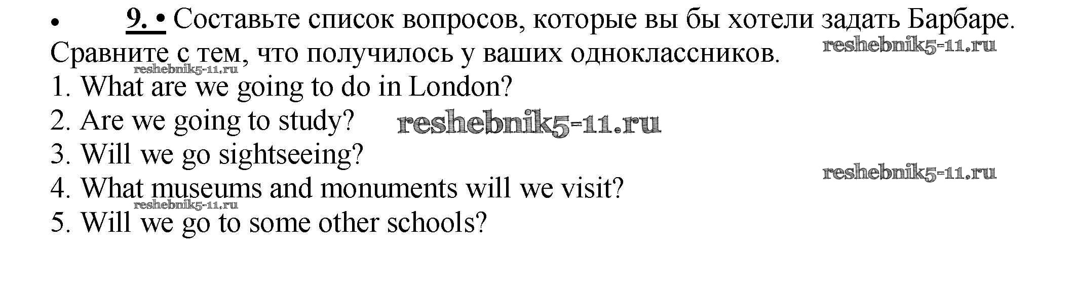 Готовая домашняя работа с ответами по Английскому языку за 5 класс Биболетова, Денисенко, Трубанева Учебник Enjoy English Титул 2015 ФГОС - Unit 2. We are going to travel to London 9
