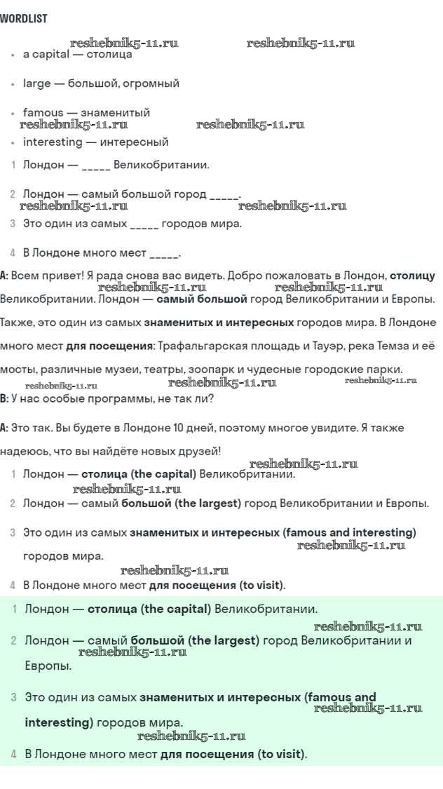 Готовая домашняя работа с ответами по Английскому языку за 5 класс Биболетова, Денисенко, Трубанева Учебник Enjoy English Титул 2015 ФГОС - Unit 3. Faces of London 1