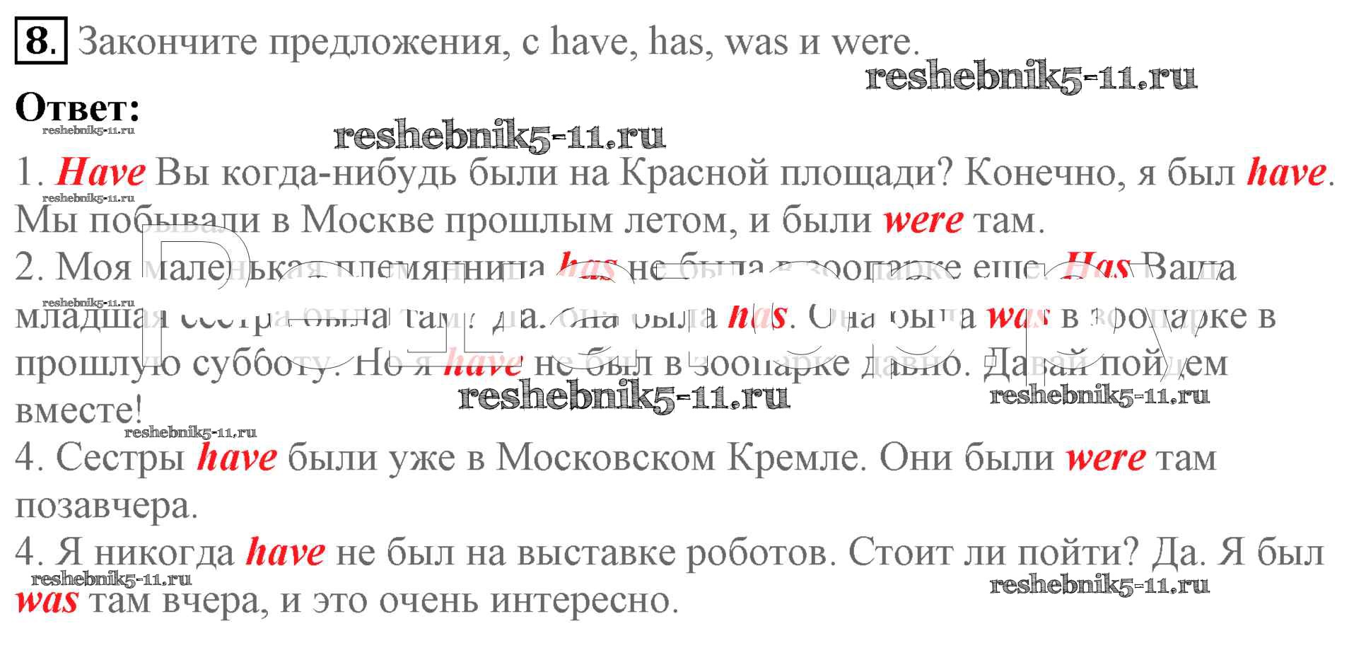 Готовая домашняя работа с ответами по Английскому языку за 5 класс Биболетова, Денисенко, Трубанева Учебник Enjoy English Титул 2015 ФГОС - Домашняя работа 8