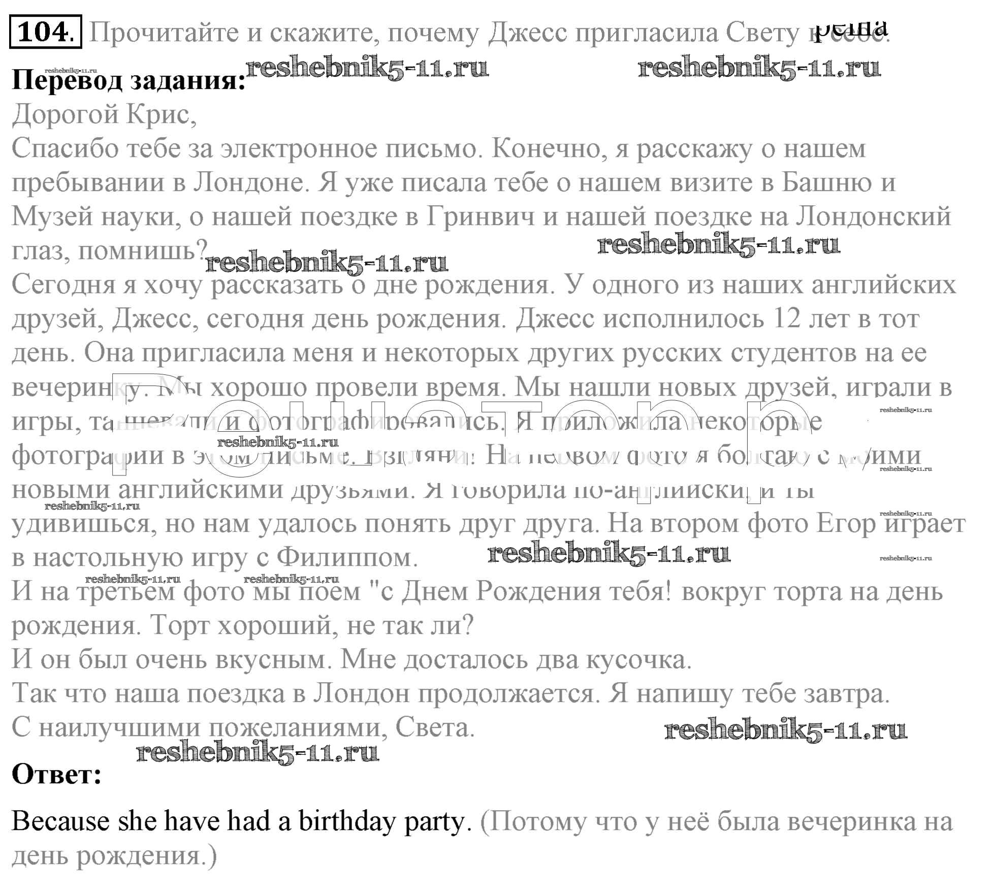 Готовая домашняя работа с ответами по Английскому языку за 5 класс Биболетова, Денисенко, Трубанева Учебник Enjoy English Титул 2015 ФГОС - Unit 3. Faces of London 104