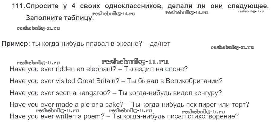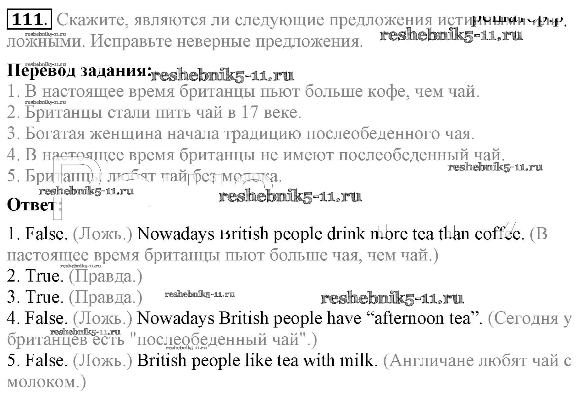 Готовая домашняя работа с ответами по Английскому языку за 5 класс Биболетова, Денисенко, Трубанева Учебник Enjoy English Титул 2015 ФГОС - Unit 3. Faces of London 111