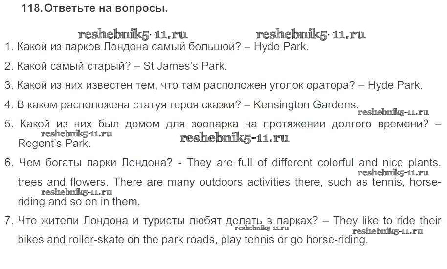 Готовая домашняя работа с ответами по Английскому языку за 5 класс Биболетова, Денисенко, Трубанева Учебник Enjoy English Титул 2015 ФГОС - Unit 3. Faces of London 118