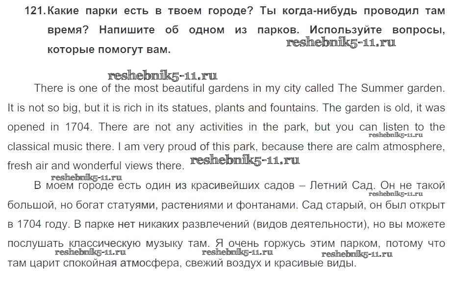 Готовая домашняя работа с ответами по Английскому языку за 5 класс Биболетова, Денисенко, Трубанева Учебник Enjoy English Титул 2015 ФГОС - Unit 3. Faces of London 121