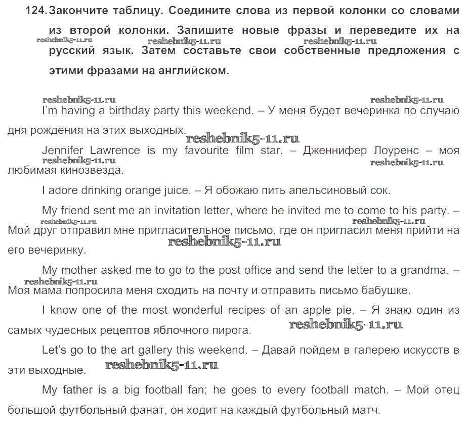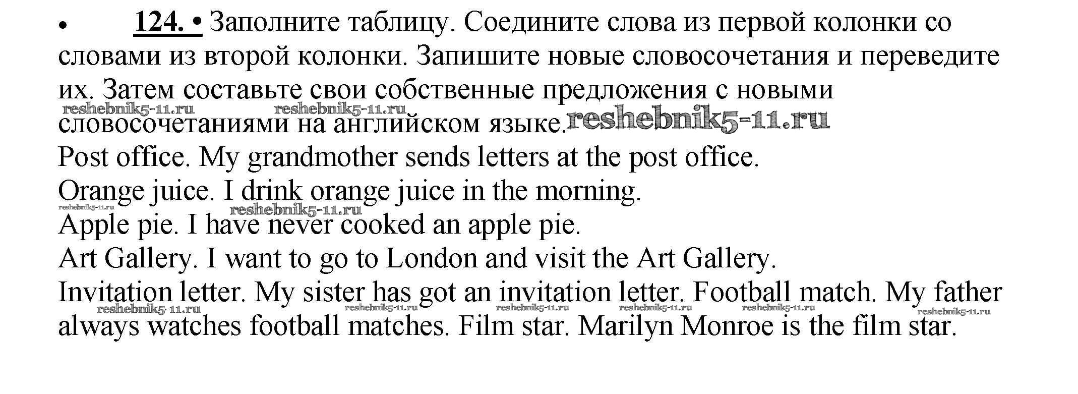 Готовая домашняя работа с ответами по Английскому языку за 5 класс Биболетова, Денисенко, Трубанева Учебник Enjoy English Титул 2015 ФГОС - Unit 3. Faces of London 124