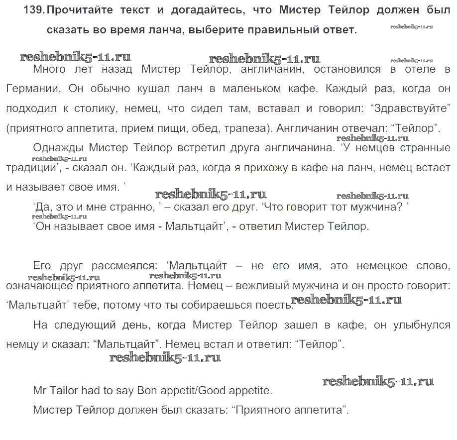 Готовая домашняя работа с ответами по Английскому языку за 5 класс Биболетова, Денисенко, Трубанева Учебник Enjoy English Титул 2015 ФГОС - Unit 3. Faces of London 139