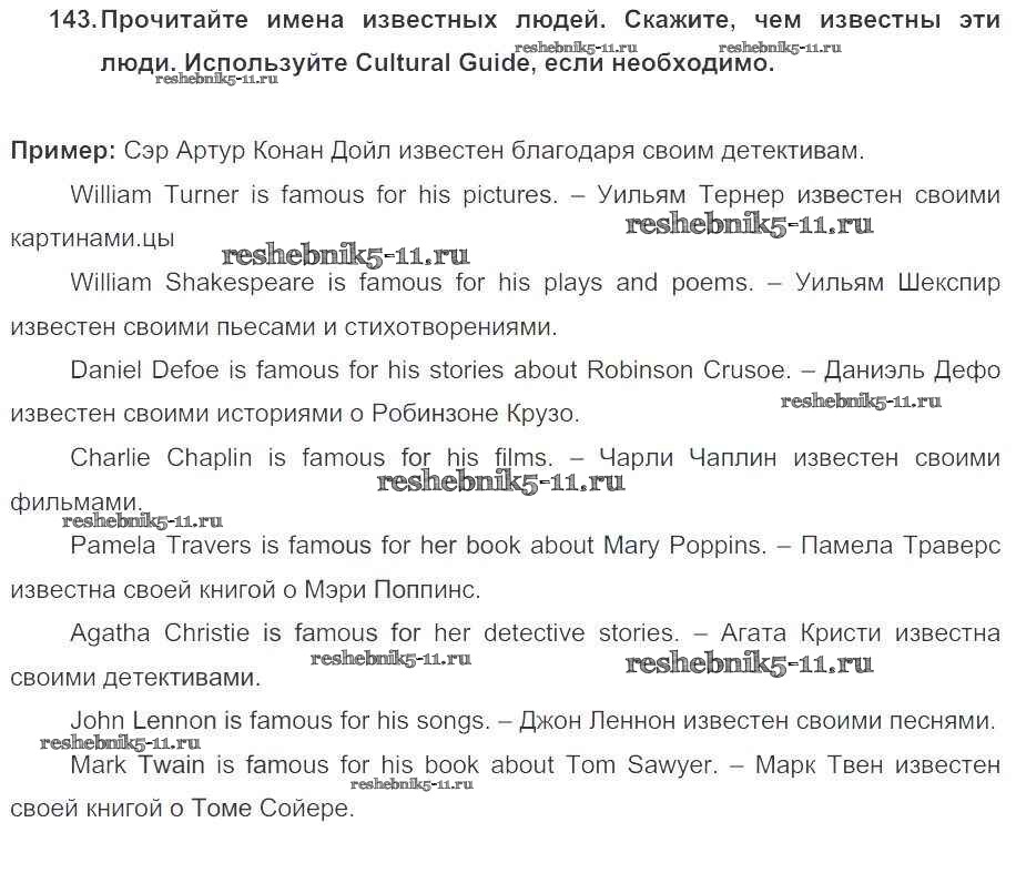 Готовая домашняя работа с ответами по Английскому языку за 5 класс Биболетова, Денисенко, Трубанева Учебник Enjoy English Титул 2015 ФГОС - Unit 3. Faces of London 143