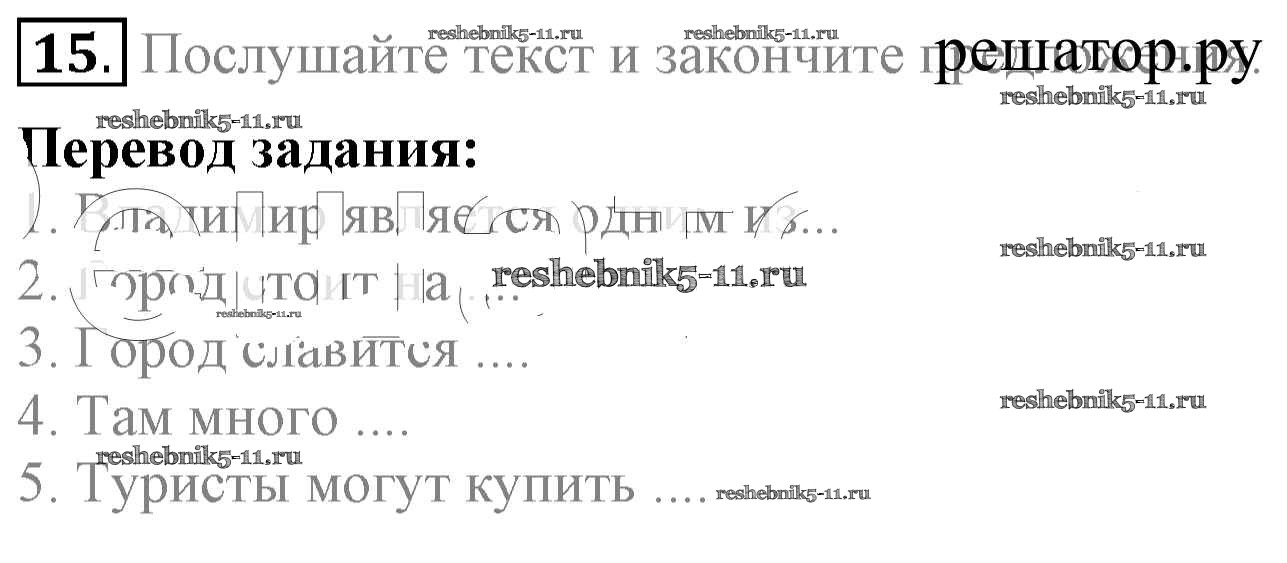 Готовая домашняя работа с ответами по Английскому языку за 5 класс Биболетова, Денисенко, Трубанева Учебник Enjoy English Титул 2015 ФГОС - Unit 3. Faces of London 15