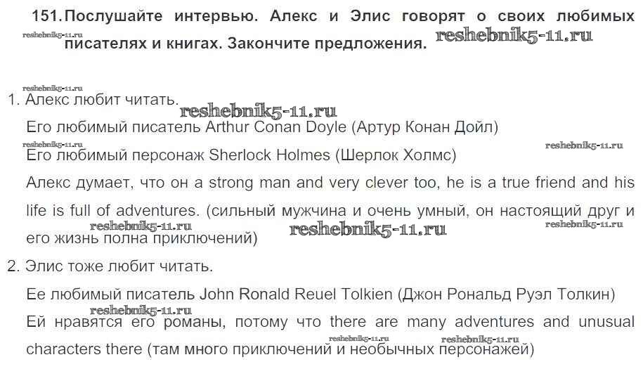 Готовая домашняя работа с ответами по Английскому языку за 5 класс Биболетова, Денисенко, Трубанева Учебник Enjoy English Титул 2015 ФГОС - Unit 3. Faces of London 151