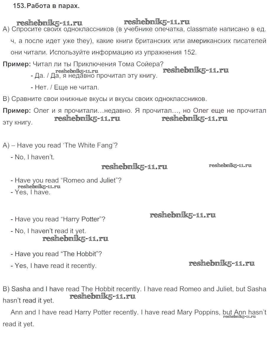 Готовая домашняя работа с ответами по Английскому языку за 5 класс Биболетова, Денисенко, Трубанева Учебник Enjoy English Титул 2015 ФГОС - Unit 3. Faces of London 153
